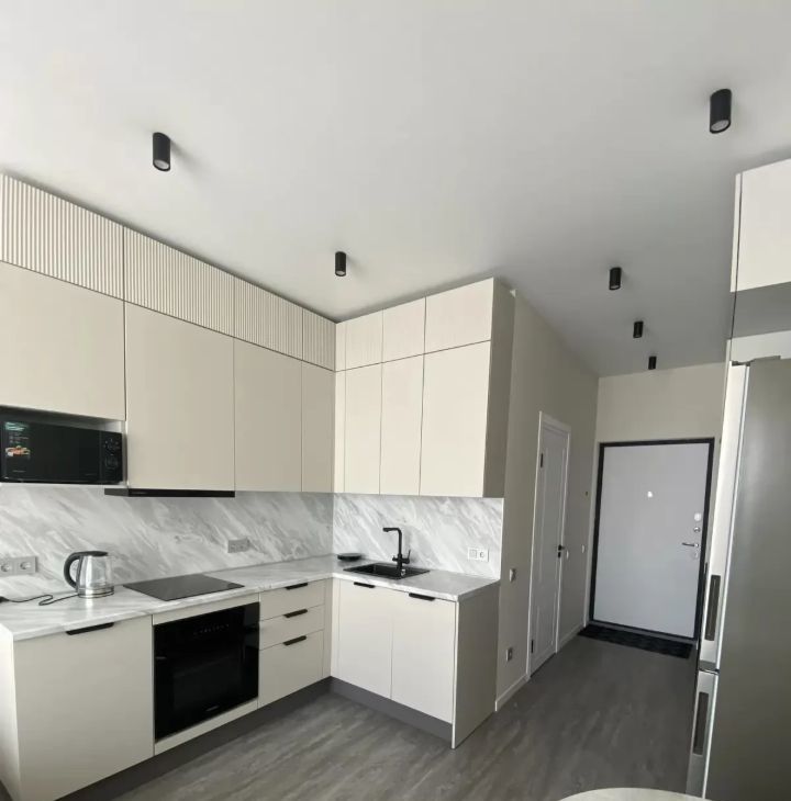 Квартира полностью укомплектована всем необходимым для комфортного проживания, включая всю бытовую технику (посудомоечная машинка, духовка, микроволновка, стиральная машинка, двухкамерный холодильник) и столовые приборы.