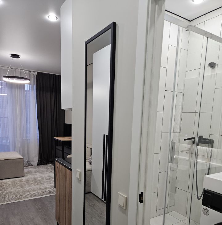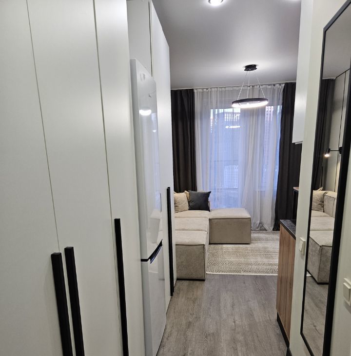 Сдаю новую студию в шаговой доступности от метро Волгоградский проспект. Дизайнерский ремонт и интерьер. Есть вся мебель и бытовая техника, как на фото. Шкафы, кухня, диван раскладной, двухкамерный холодильник, стиральная машина, кондиционер, телевизор, варочная панель, микроволновая печь, вытяжка, душевая кабина, французкий балкон. Современный комплекс с бассеином, фитнесом, модными салонами и кафе, зона каворкинга, шикарная входная группа, подземный паркинг, дом огорожен, круглосуточная охрана, видеонаблюдение. Догоров оформляю. Залог разбиваю на 2 месяца. Собственник.