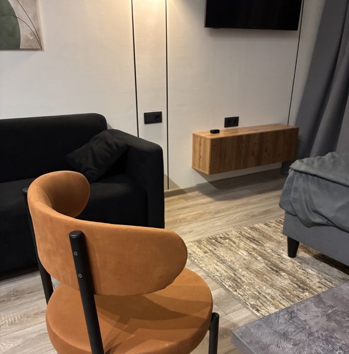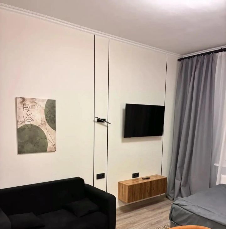 Собственник, без комиссии! Сдаётся стильная студия с современным ремонтом в монолитном доме 2025 года постройки. В квартире выполнен евро ремонт, что видно на фотографиях. Просторная кухня оборудована всей необходимой техникой, включая холодильник и микроволновую печь. В комнате установлен кондиционер и телевизор, а также удобная кровать и диван,шкафы для хранения вещей, посуда, пылесос, гладильная доска, сушилка для вещей, утюг, одеяло, подушки. Все новое. В квартире никто не жил, сдается впервые.