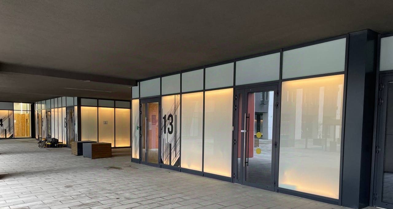 В доме есть: Дикси (продуктовый магазин), Ozon, Wildberries, летом планируется открытие Фитнес клуба с бассейном.