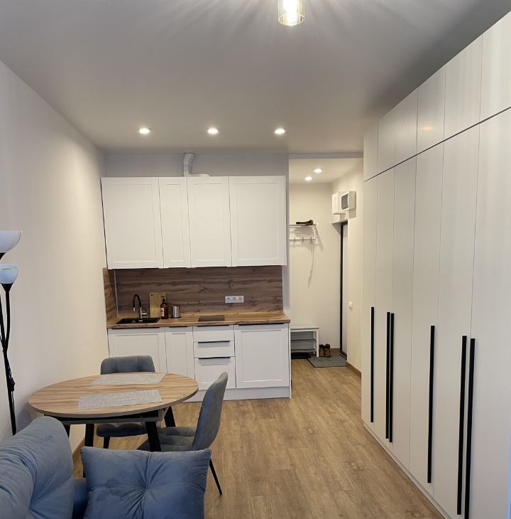 Сдаётся в аренду стильная студия с хорошим ремонтом в современном жилом комплексе, все абсолютно новое. Удобное расположение, 2 мин пешком до метро.