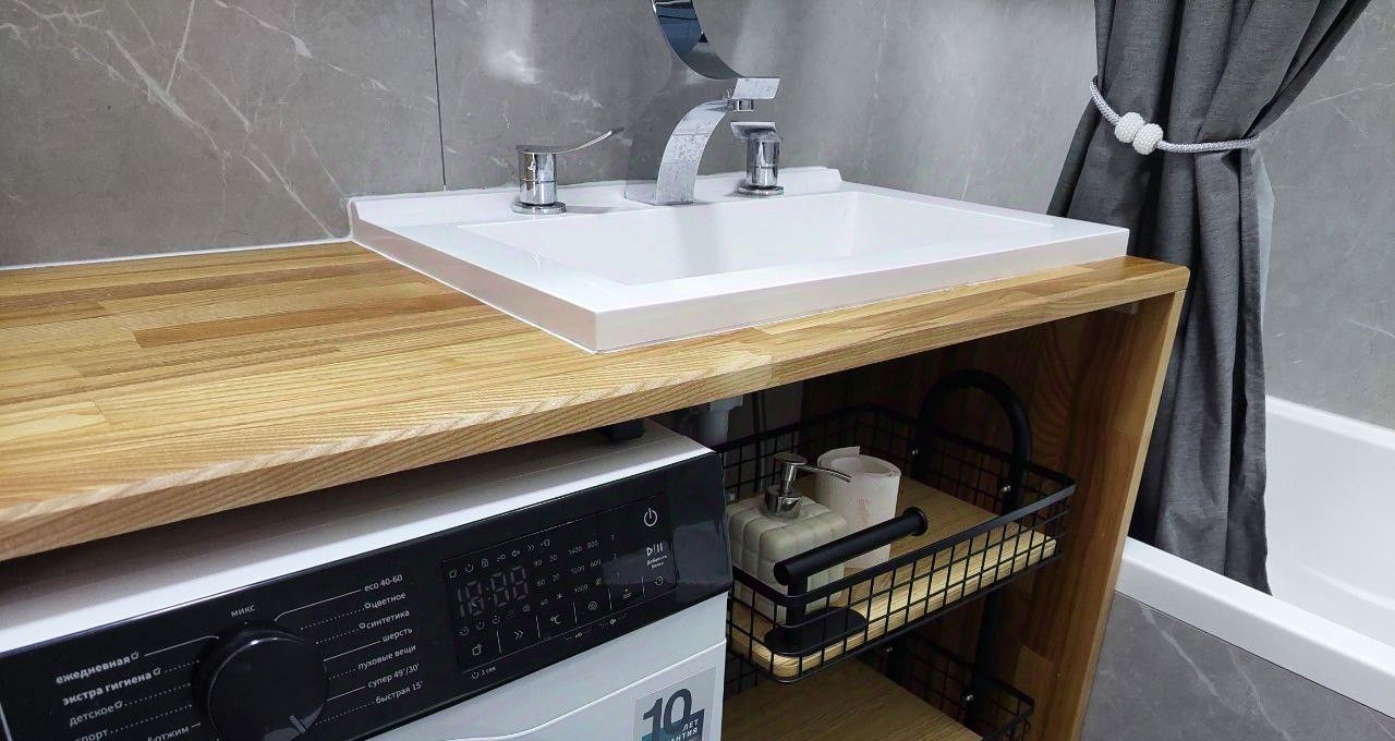 Техника: Установлены кондиционер (спасение летом), холодильник, телевизор и стиральная машина. В раковине качественный измельчитель отходов и посудомоечная машина.