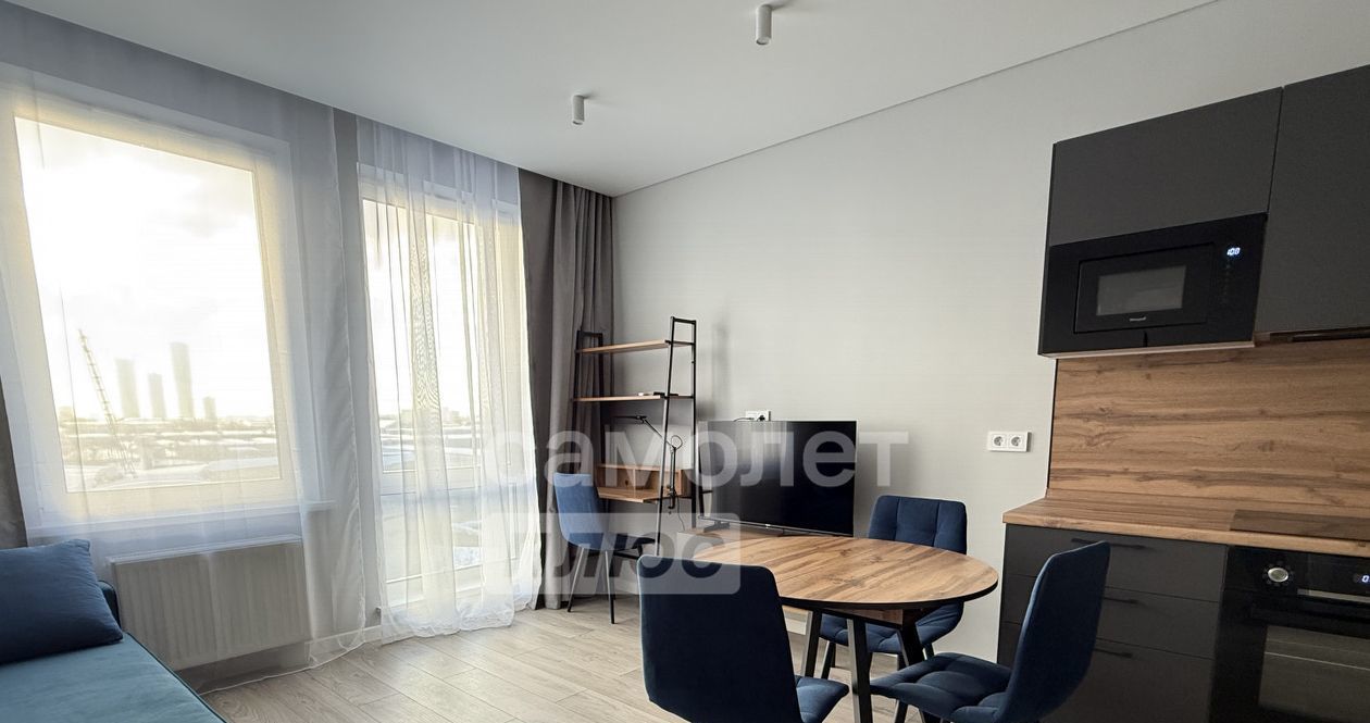 В студии выполнен качественный дизайнерский ремонт, который создаёт атмосферу уюта и современного стиля. Пространство полностью меблировано: есть вся необходимая мебель и техника: диван, рабочая, столовая, тв-зоны, микроволновая печь, духовой шкаф, холодильник, посудомоечная машина, телевизор и стиральная машина. Санузел совмещённый.