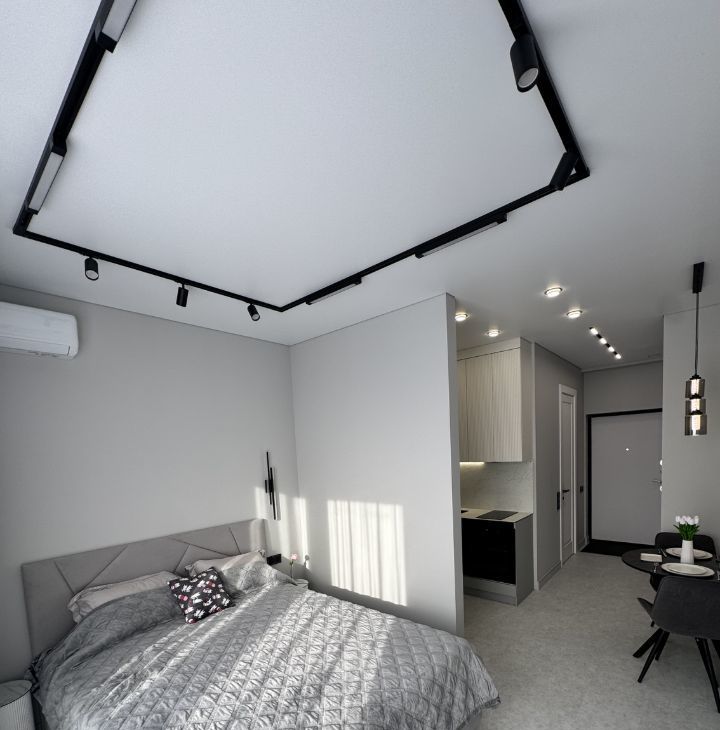 Для максимального комфорта для Вас в квартире установлен Электрокарниз, а также дорогой удобный ортопедический матрас известного бренда Аскона. Несколько вариантов освещения.