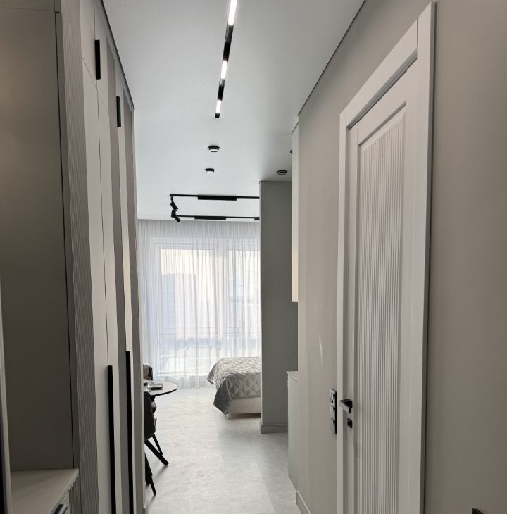 Общая площадь квартиры составляет 27 кв.м, расположена на 22 этаже где открывается прекрасный вид на город и красивые закаты .