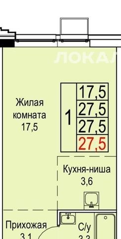 Студия Москва Новоостаповская ул., 20 (27.5 м²)