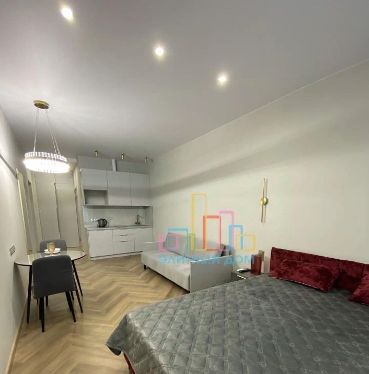 Планировкой предусмотрена встроенная кухня, обеденная зона с диваном. спальное место кровать (160х200), совмещенный санузел с душевой. В квартире есть вся необходимая для комфортного проживания бытовая техника.