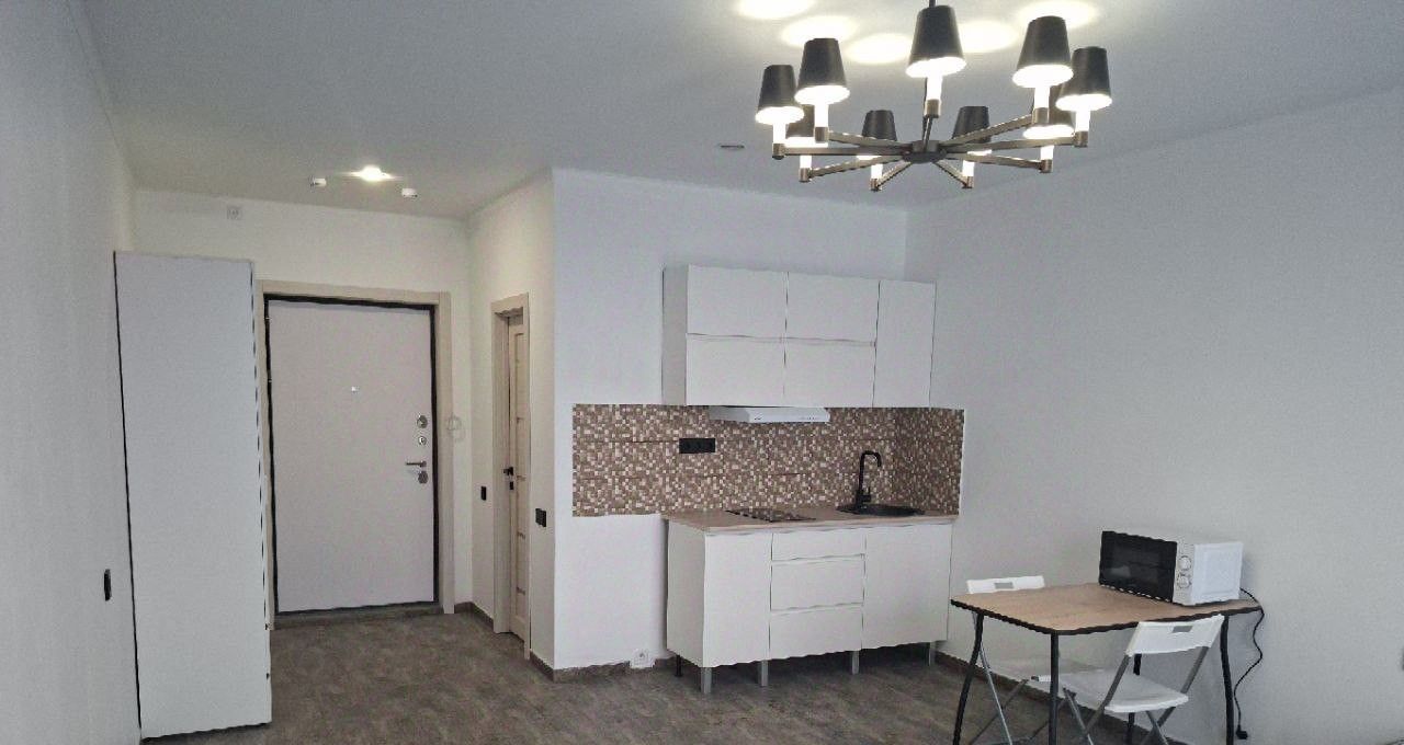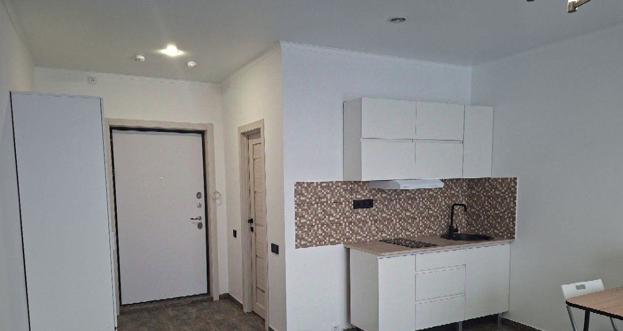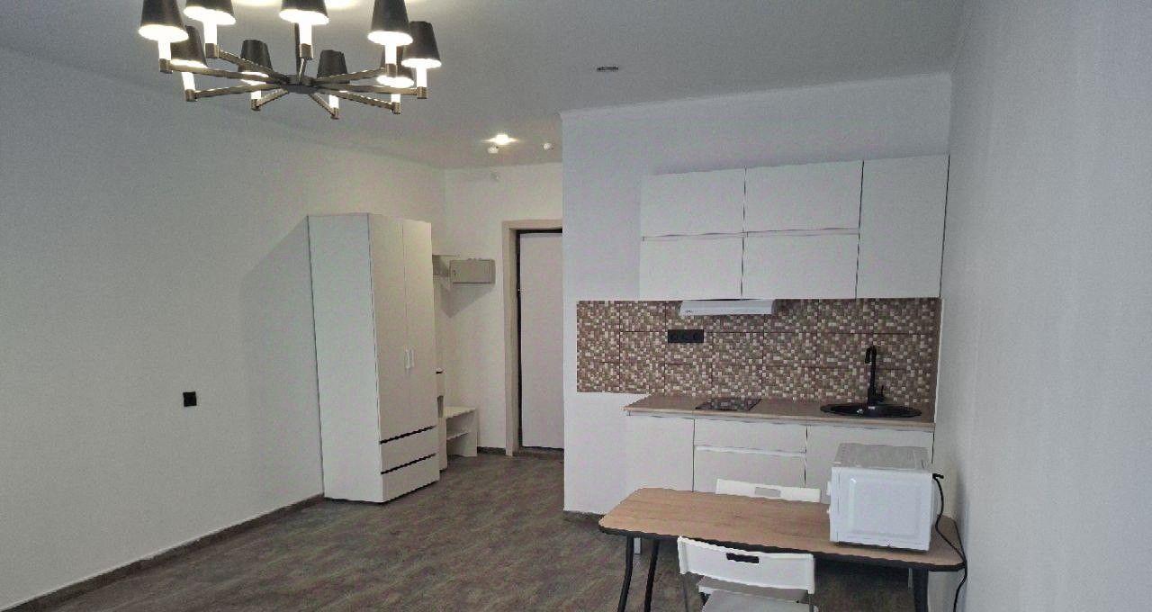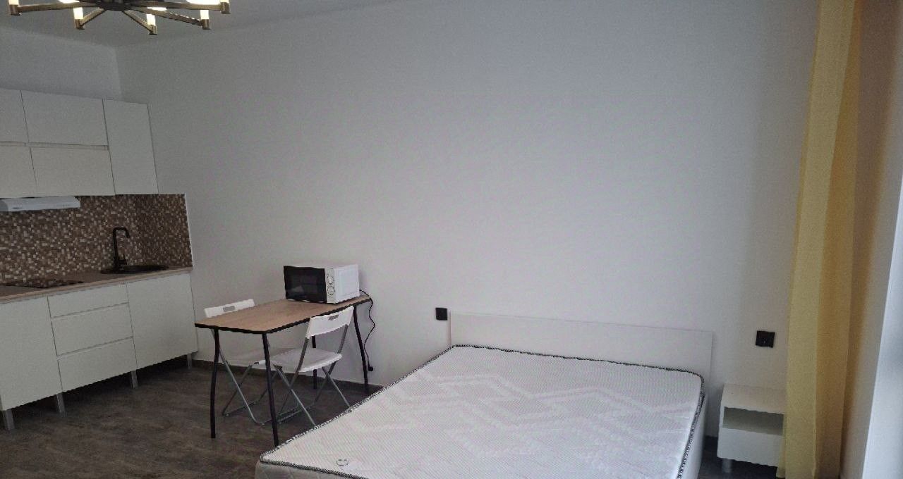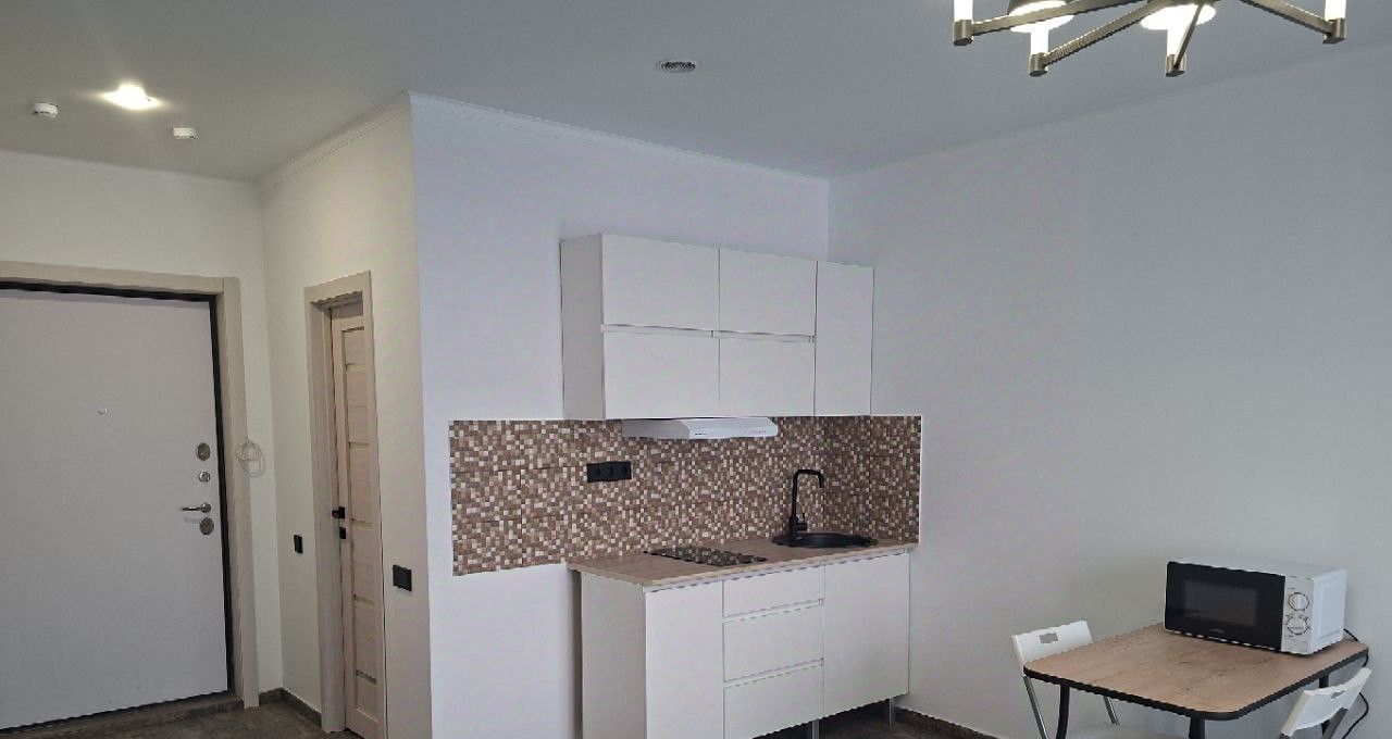 Сдаётся уютная студия с евроремонтом в современном доме. Общая площадь — 29,5 кв. м, жилая — 25,5 кв. м, кухня — 4 кв. м. Студия расположена на 14-м этаже 22-этажного дома. Высокие потолки 2,7 метра создают ощущение пространства. Окна выходят на улицу.
