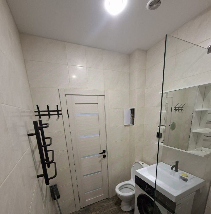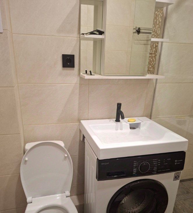 В квартире есть всё необходимое для комфортного проживания: современная мебель на кухне и в комнате, холодильник и стиральная машина. Санузел совмещённый, оборудован душевой кабиной.