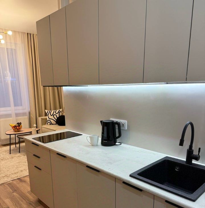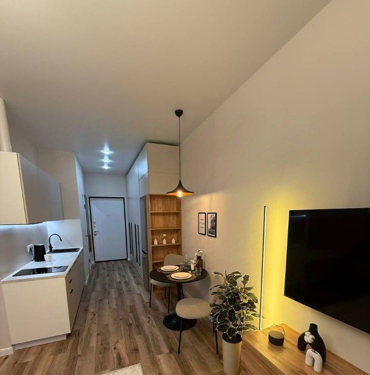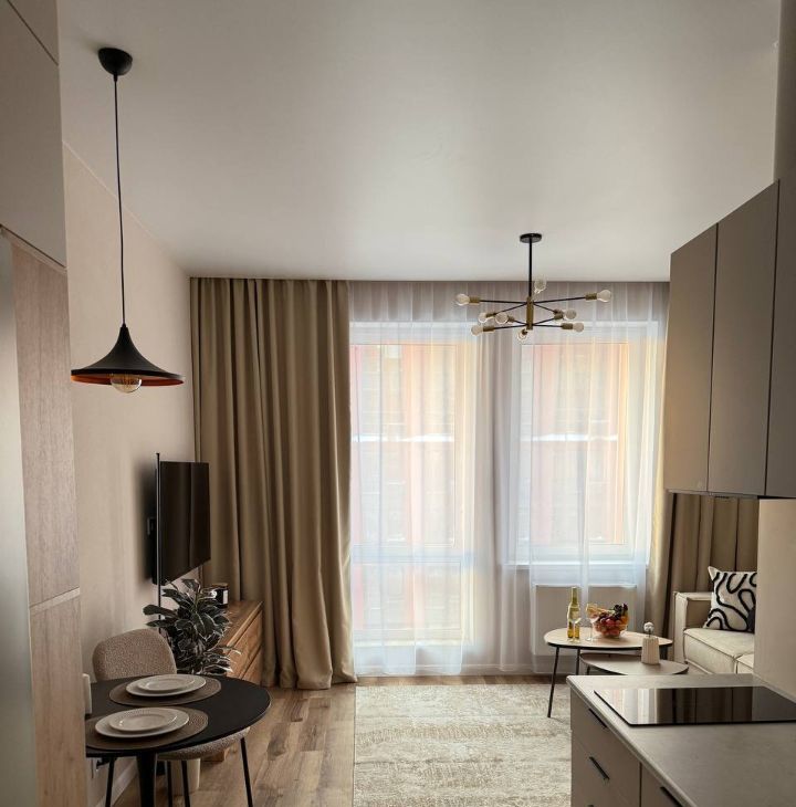 Сдается просторная и светлая квартира-студия 30м2, новый дом, новый ремонт, все новое. Продуманная планировка с зонированием, полноценная двуспальная кровать, диван, зоны хранения, обеденная зона, много сценариев освещения, большие окна, французский балкон, высокие потолки 2,8м, вид на закат.
