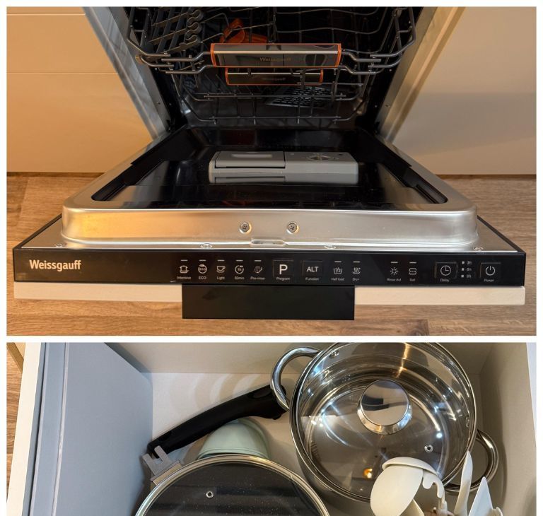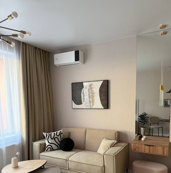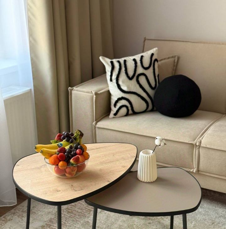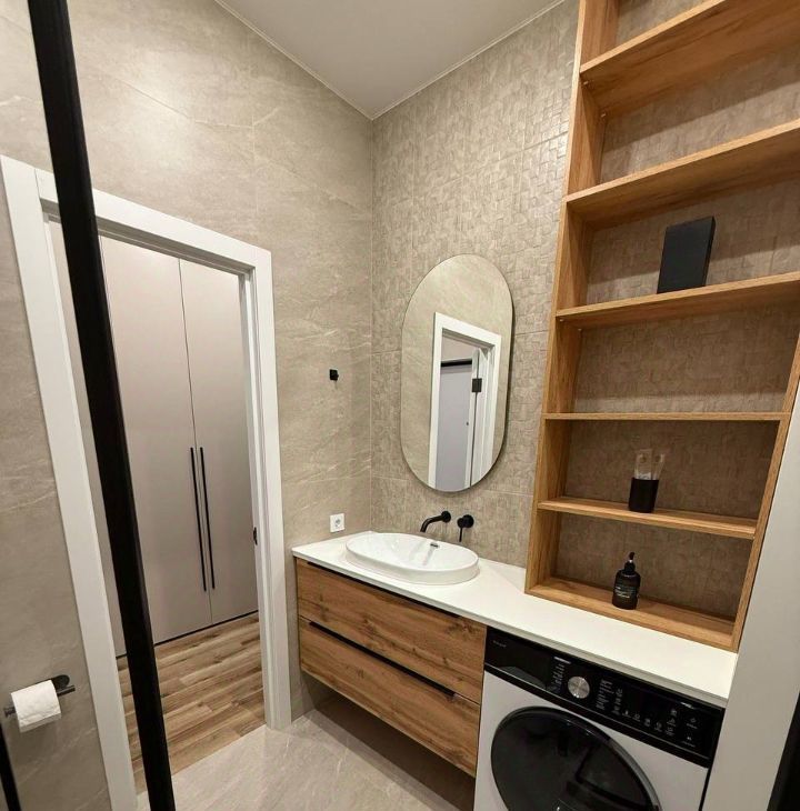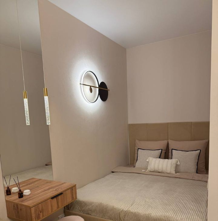 Квартира полностью оборудована для комфортного проживания, вплоть до посуды, вешалок и декора, укомплектована всей необходимой мебелью и техникой: в т.ч. СВЧ, кондиционер, посудомоечная машина, пылесос, колонка Алиса, телевизор 50 дюймов, теплый пол, умные розетки. Плотные шторы blackout и ортопедический матрас 160х200см позволят прекрасно высыпаться. Диван раскладывается в дополнительное 140х195см спальное место. Много зон хранения - шкафы, тумбы, стеллажи.