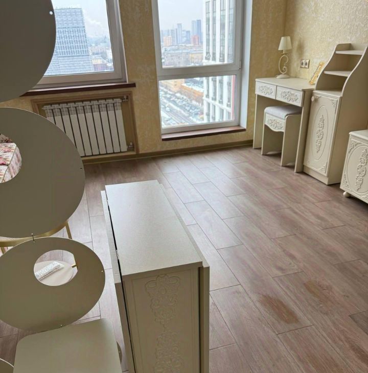 20-м этаже современного дома. Высота потолков - 2.8 метра, из окон открывается перспектива на Москву.До метро всего 3 минуты пешком, что делает это предложение особенно