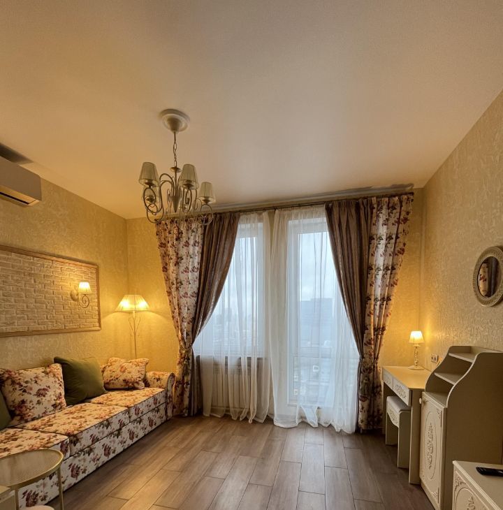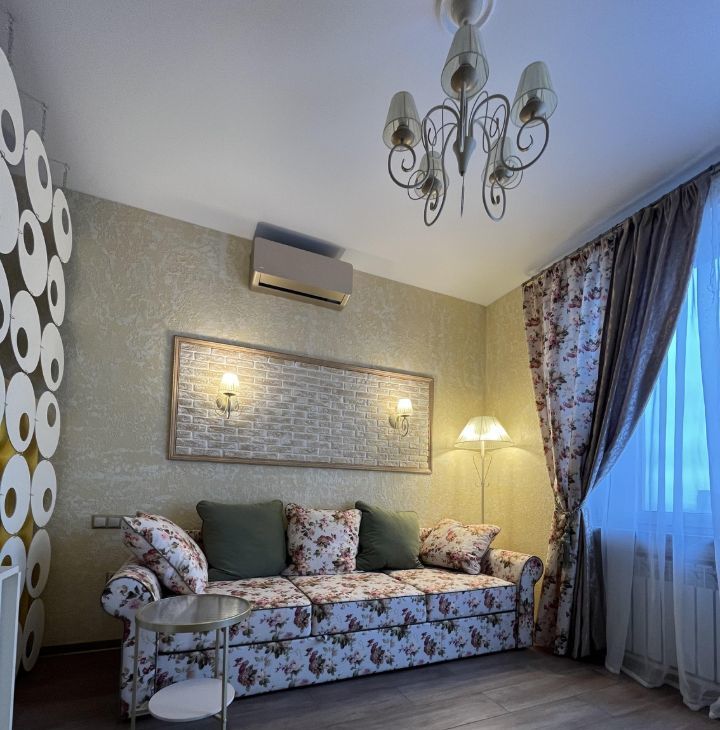 В квартире выполнен дизайнерский ремонт, все продумано до мелочей,мебель в комнате и на кухне. Оснащена всей необходимой техникой: кондиционер, холодильник, посудомоечная машина, телевизор и стиральная машина. В ванной комнате установлена душевая кабина. Во всей квартире ТЕПЛЫЙ ПОЛ.На время отключения горячей воды есть мощный водонагреватель.
