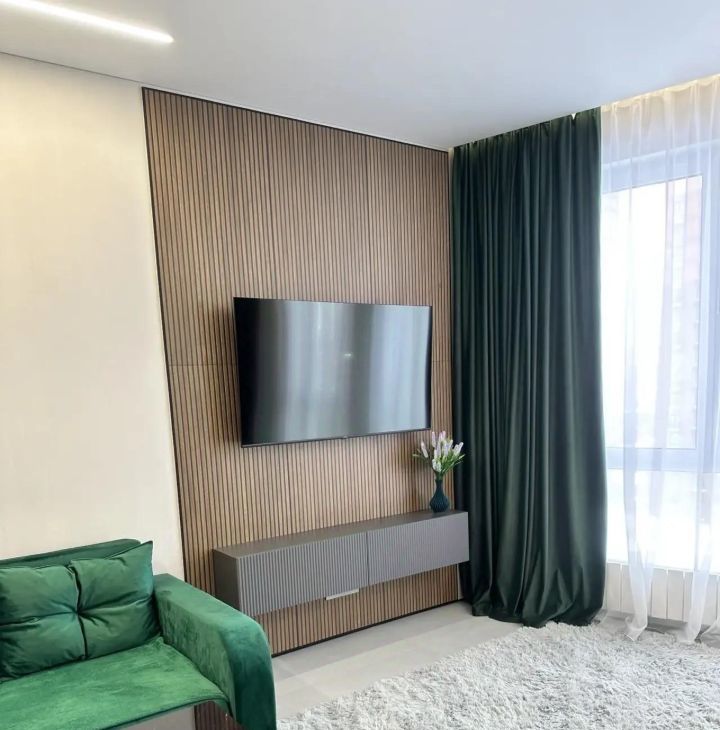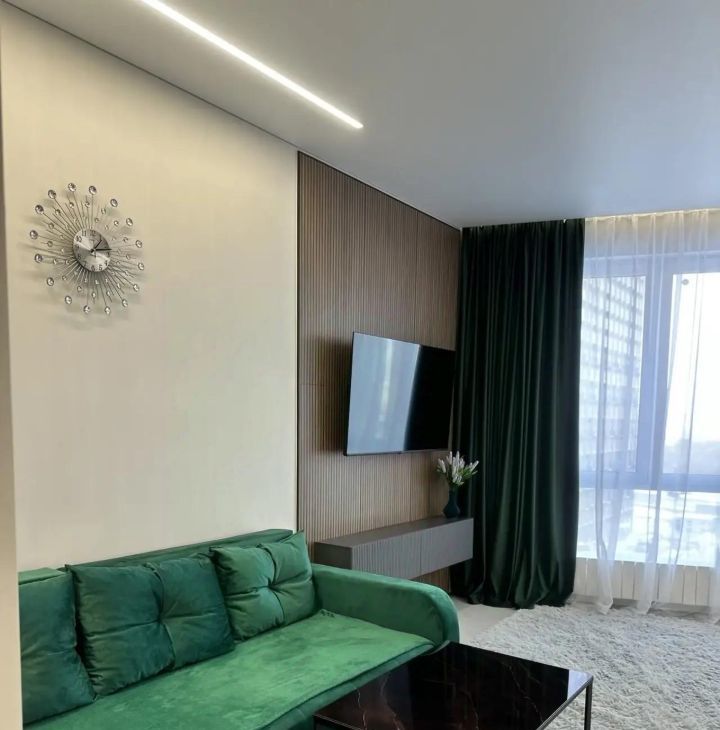 В квартире есть все необходимое для комфортного проживания: современная мебель на кухне и в комнате, кондиционер, холодильник, посудомоечная машина, телевизор и стиральная машина. Санузел совмещенный, оборудован душевой кабиной. Интернет уже подключен, поэтому можно сразу пользоваться.