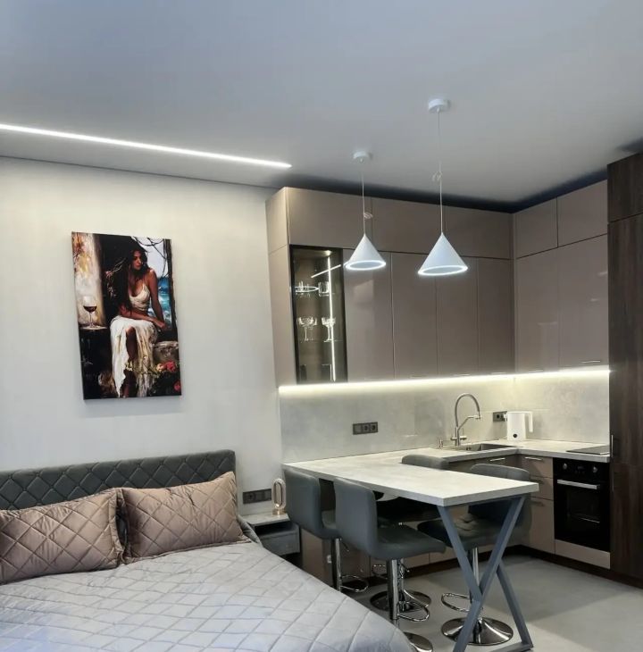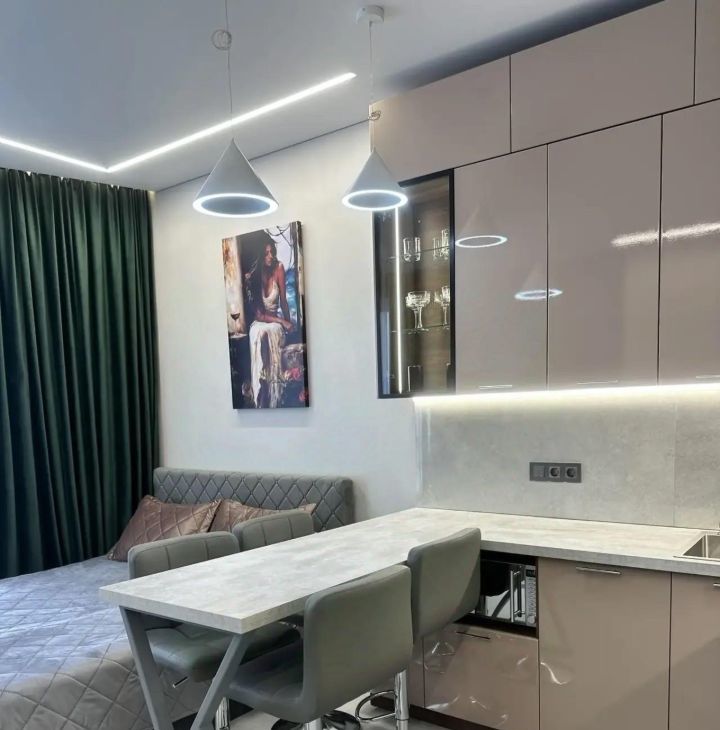 Стильные апартаменты напрямую от собственника!!! Без комиссии ! Сдается уютная студия с евроремонтом в современном доме на 8 этаже из 9. Общая площадь квартиры — 31,5 кв. м, с жилой площадью 15 кв. м и кухней 5 кв. м. Высокие потолки 3 метра создают ощущение простора. До метро 1 минута пешком, что удобно для тех, кто ценит свое время.