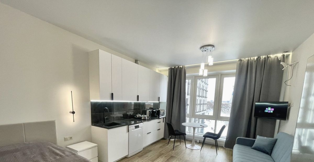 Впервые,в минуте ходьбы от метро,в новом стильном доме HighWay сдается обалденная ,комфортная,просторная студия 37 кв.м,для современных людей. Она просто куколка! Натяжные потолки,теплые полы,выполнен качественный свежий евро ремонт. Техника и мебель дорогая,красивая. Установлена шикарная кухня,установлены фильтры для чистки воды. Имеется посуда,встроенная посудомоечная машина! Все абсолютно новое! Уютная атмосфера создана для вашего комфортного проживания. Оплата коммунальных услуг полностью оплачивается нанимателем,согласно квитанции,сверху арендной оплаты. Достойная студия. Собственники замечательные люди. Рассмотрим на длительный срок платежеспособных,аккуратных людей.