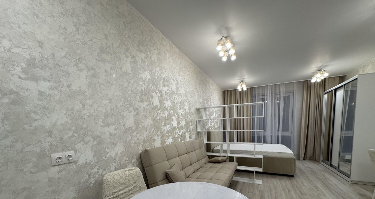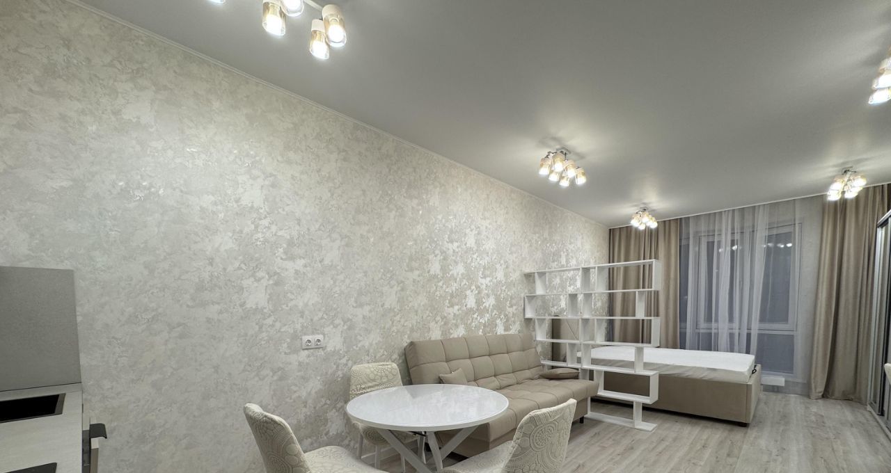 Сдается студия с дизайнерским ремонтом на длительный период проживания. Квартира оборудована всей необходимой техникой и мебелью для комфортного проживания:кондиционер, микроволновка,духовой шкаф,варочная панель, чайник, стиральная машина, двуспальная кровать, раскладной диван, телевизор, видеодомофон с возможностью наблюдения за подземной парковкой.