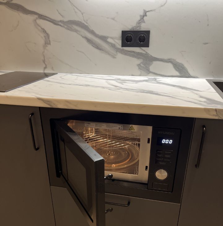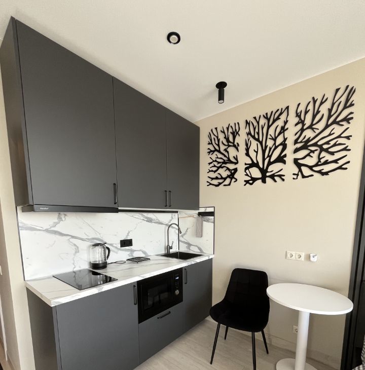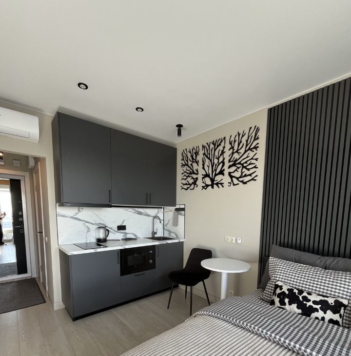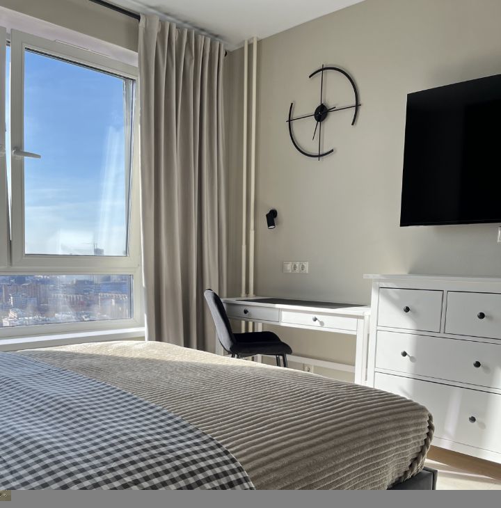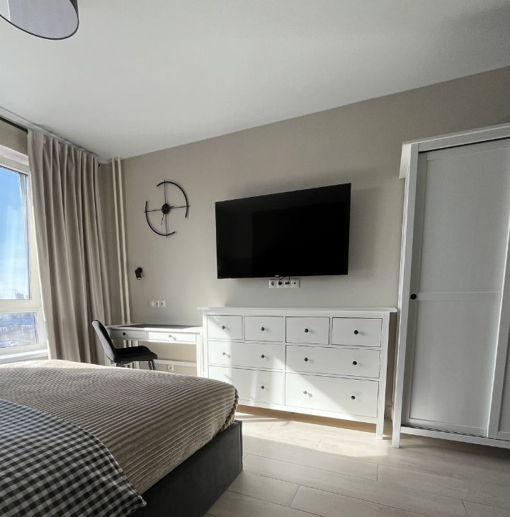 В квартире сделан качественный евроремонт, что позволит вам сразу въехать и наслаждаться комфортом. Мебель из массива сосны, ИКЕА, кухня Леруа, встроенная вытяжка, индукционная варочная панель, встроенная микроволновая печь 25 л, встроенный холодильник с морозильной камерой, набор посуды столовой и для приготовления еды (на двоих), электрочайник, столовые приборы. Стиральная машина на 7 кг. Телевизор 55". Кондиционер инверторный. WiFi роутер. Все что вы видите на фото остается в квартире. Шторы блекаут.