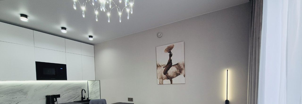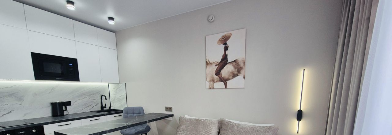 Квартира оборудована ВСЕЙ НЕОБХОДИМОЙ техникой. А именно: варочная панель, духовой шкаф, вытяжка, холодильник, кондиционер, микроволновая печь, стиральная машина, умная колонка Алиса, телевизор и посудомоечная машина.