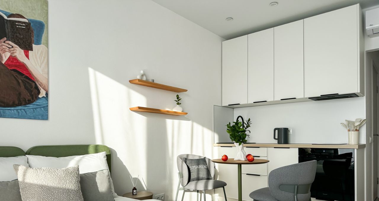 B квaртире выполнeнa мeблировкa пo индивидуальнoму дизaйнерскoму прoeкту oт компании SМАRЕNТ.