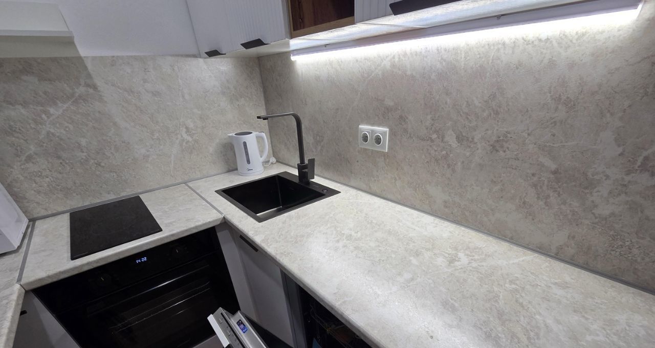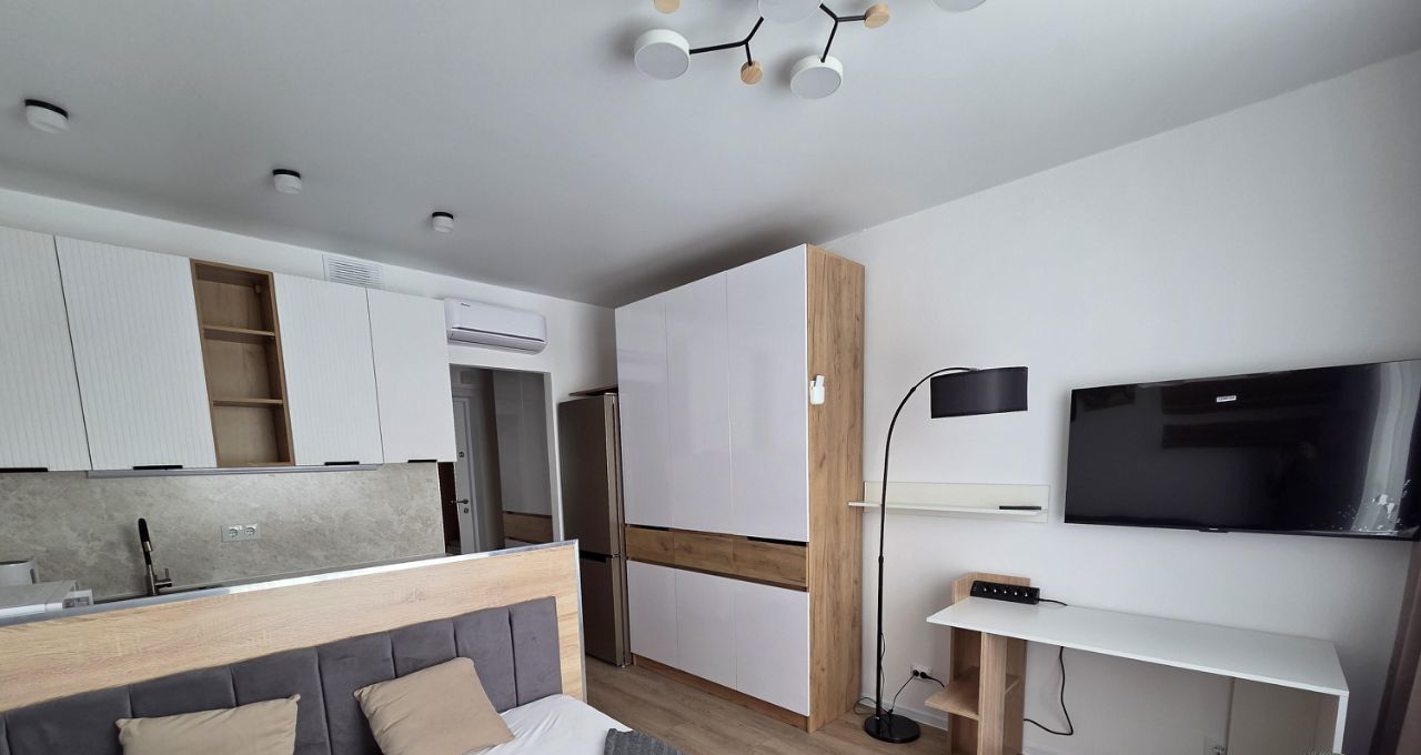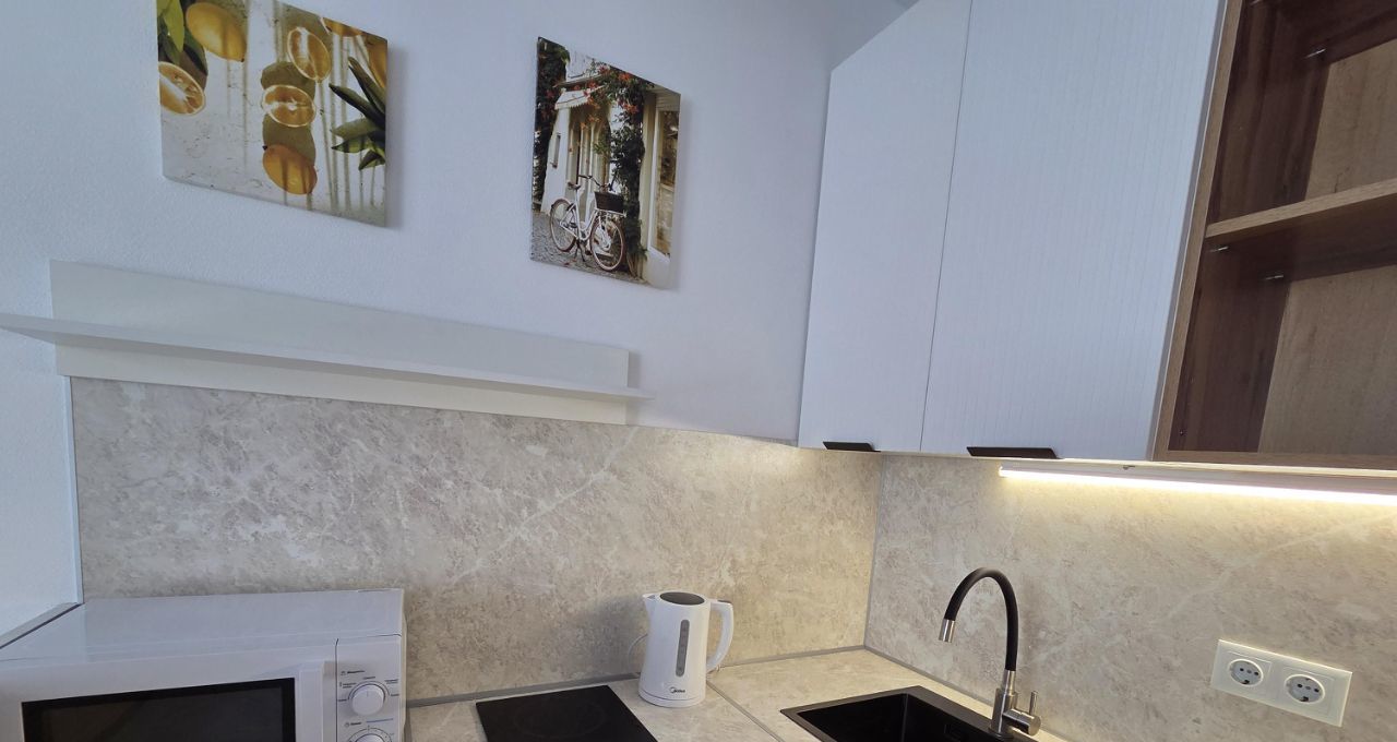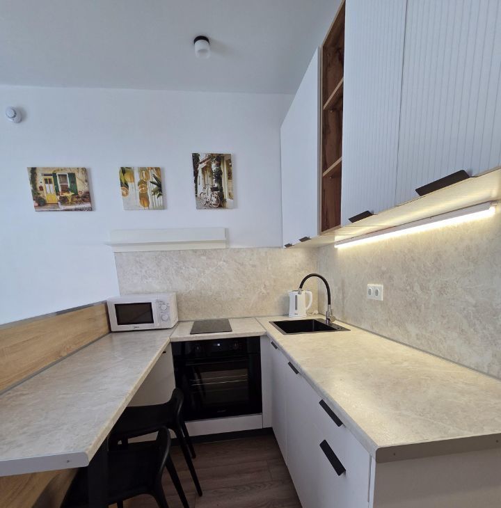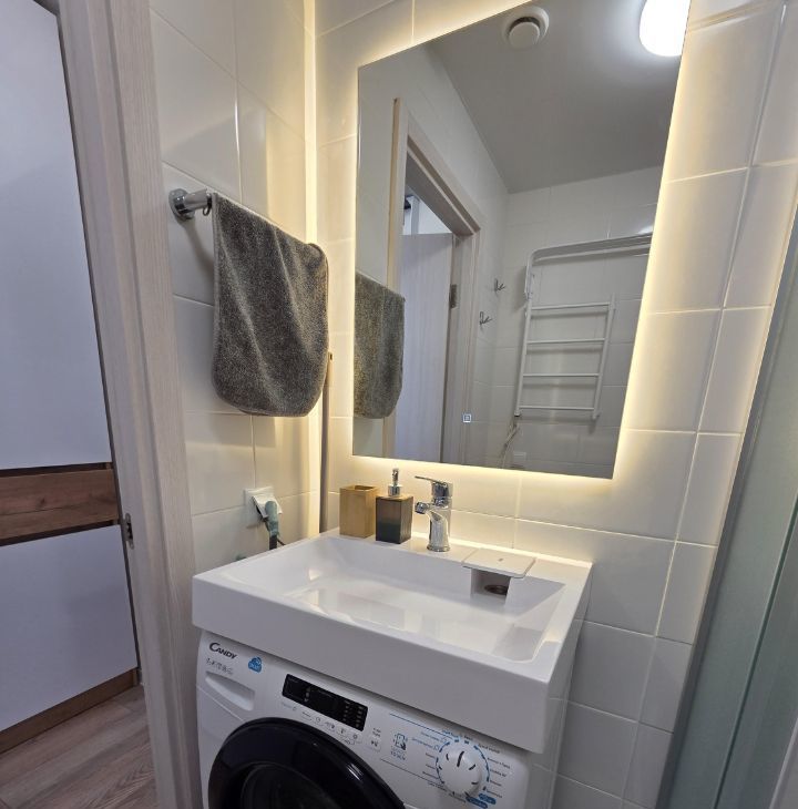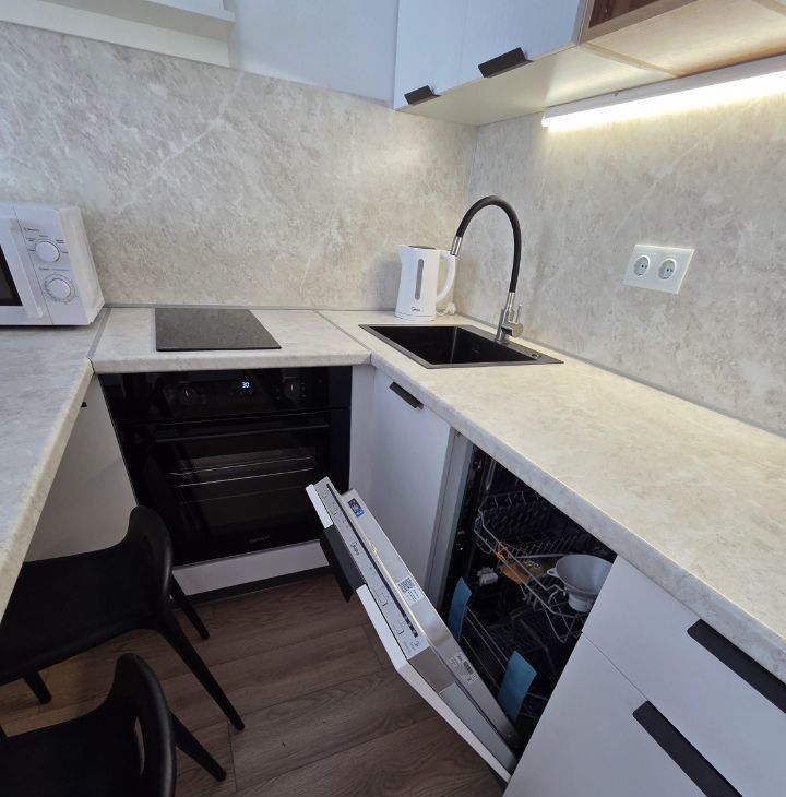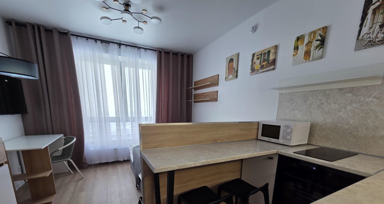 Студия с хорошо укомплектованной кухней ( пмм, индукционная панель, духовка, стиральная машина, кондиционер, чайник)