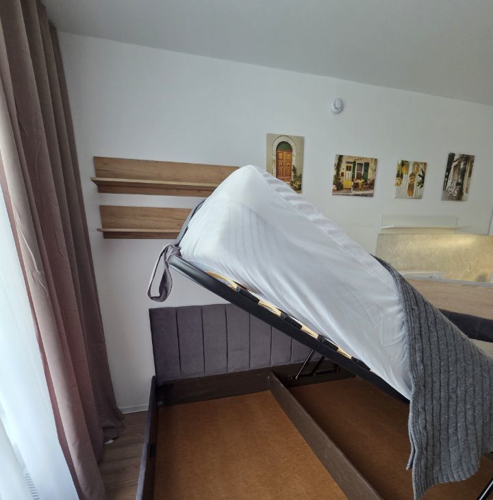 Много мест хранения ( 2 шкафа + кровать с подьемным механизмом).