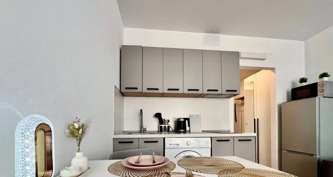 Ремонт выполнен в скандинавском стиле, в темно-серых тонах. Установлена полностью новая мебель и техника: 2-х спальная кровать, Диван, телевизор со Smаrt ТV. Кухонный гарнитур, Варочная панель, Холодильник, Стиральная машина.
