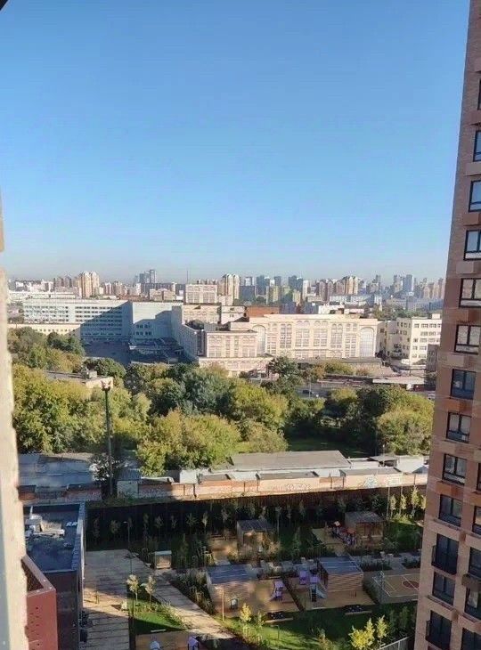 Светлая студия с большим окном, восточная сторона, вид на тихий благоустроенный двор и на низкоэтажный район в сторону центра столицы.