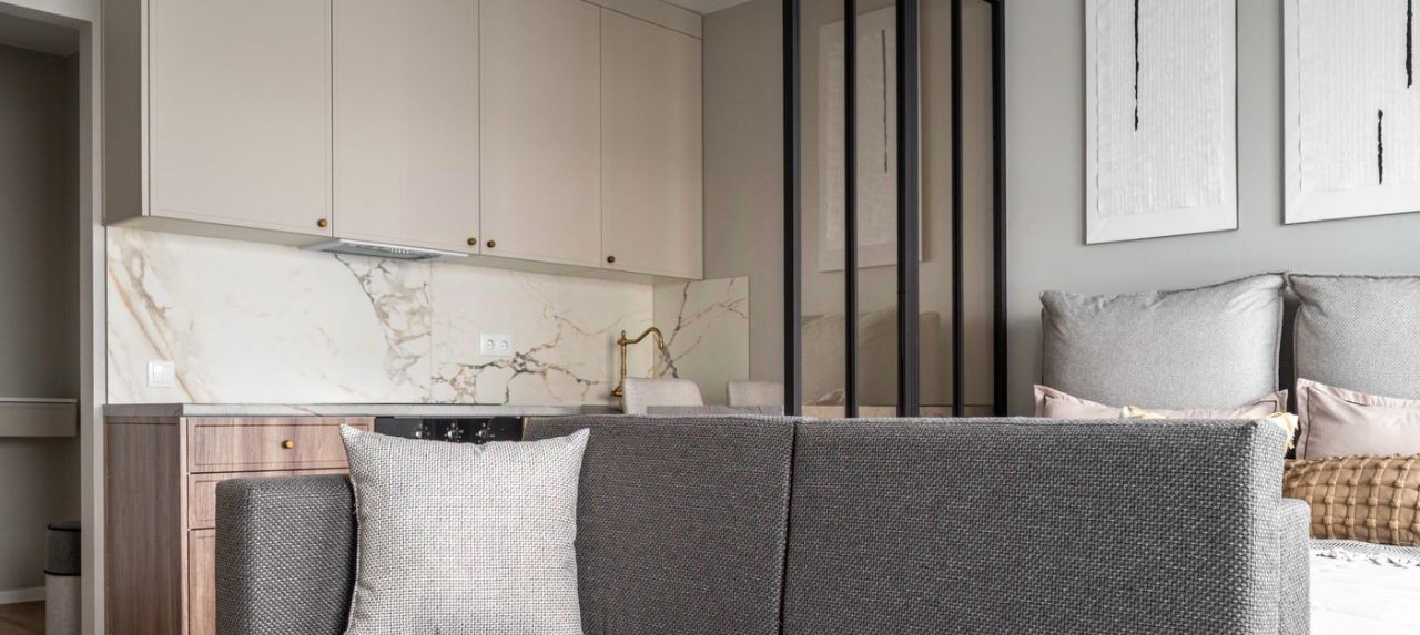 Вашему вниманию предлагается стильная студия с абсолютно новым дизайнерским ремонтом. Новая мебель и техника, никто не жил. Вы будете первым арендатором! Квартира оснащена всей необходимой мебелью и техникой (посудомоечная машина, кондиционер, встроенный холодильник, духовой шкаф, варочная панель, телевизор).