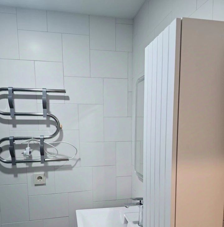 Сдаётся стильная студия с дизайнерским ремонтом на Новороссийской улице, в пяти минутах пешком от метро Люблино. Квартира площадью 17 кв. м находится на первом этаже 14-этажного панельного дома, построенного в 2004 году. Высота потолков — 2,64 метра.