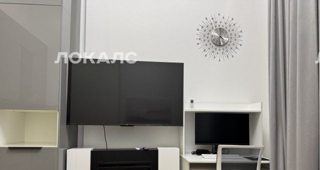 В студии есть всё для комфортного проживания: большой диван-аккордеон с независимым пружинным блоком ещё со спальным местом 1,9 м на 2 м с бельевым ящиком; телевизор диагональю 51 дюйм, полноценное рабочее место, кухня с техникой, в том числе с посудомоечной машиной, микроволновкой и духовым шкафом.