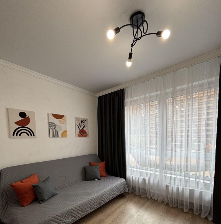 Продается стильная студия в новом доме, расположенном в нескольких минутах ходьбы от метро Аминьевская. Общая площадь квартиры составляет 23.6 кв. м, жилая площадь — 18 кв. м. Квартира находится на втором этаже современного 33-этажного здания, построенного в 2023 году. Высота потолков — 2.7 метра, окна выходят во двор, что обеспечивает тишину и спокойствие.