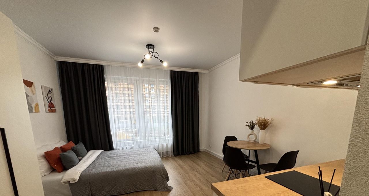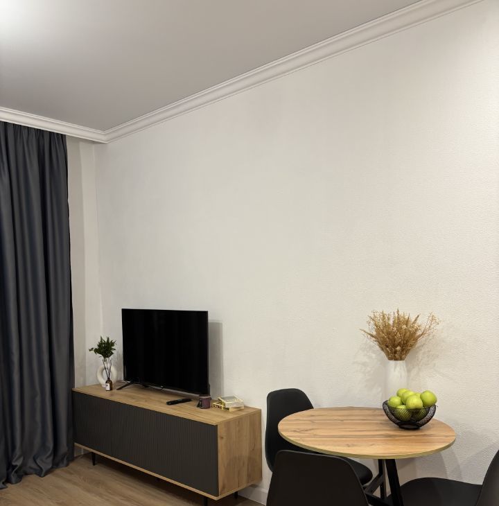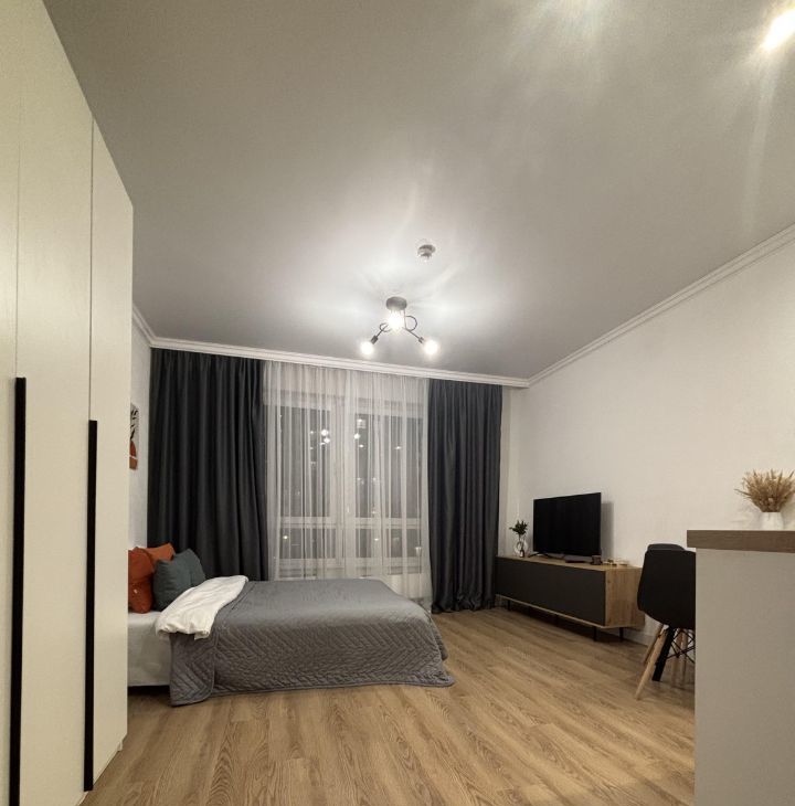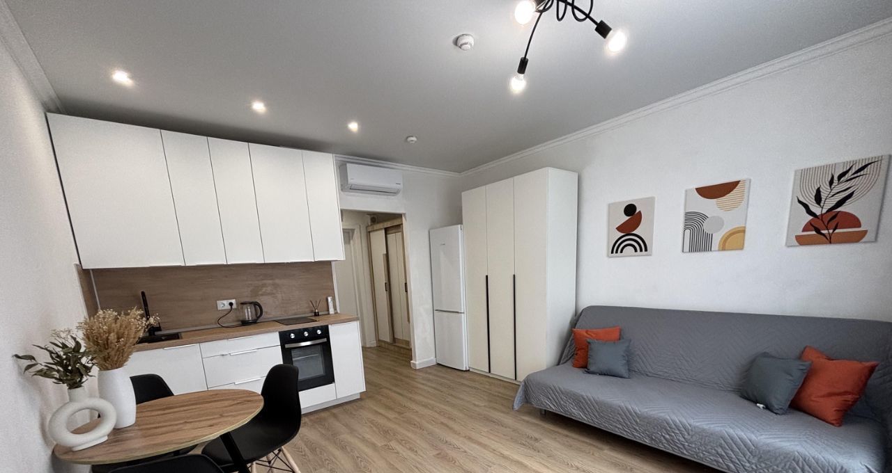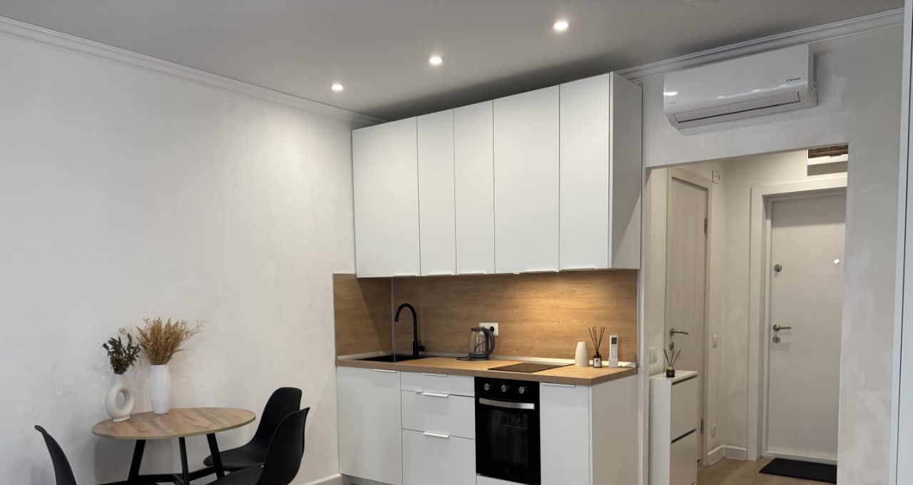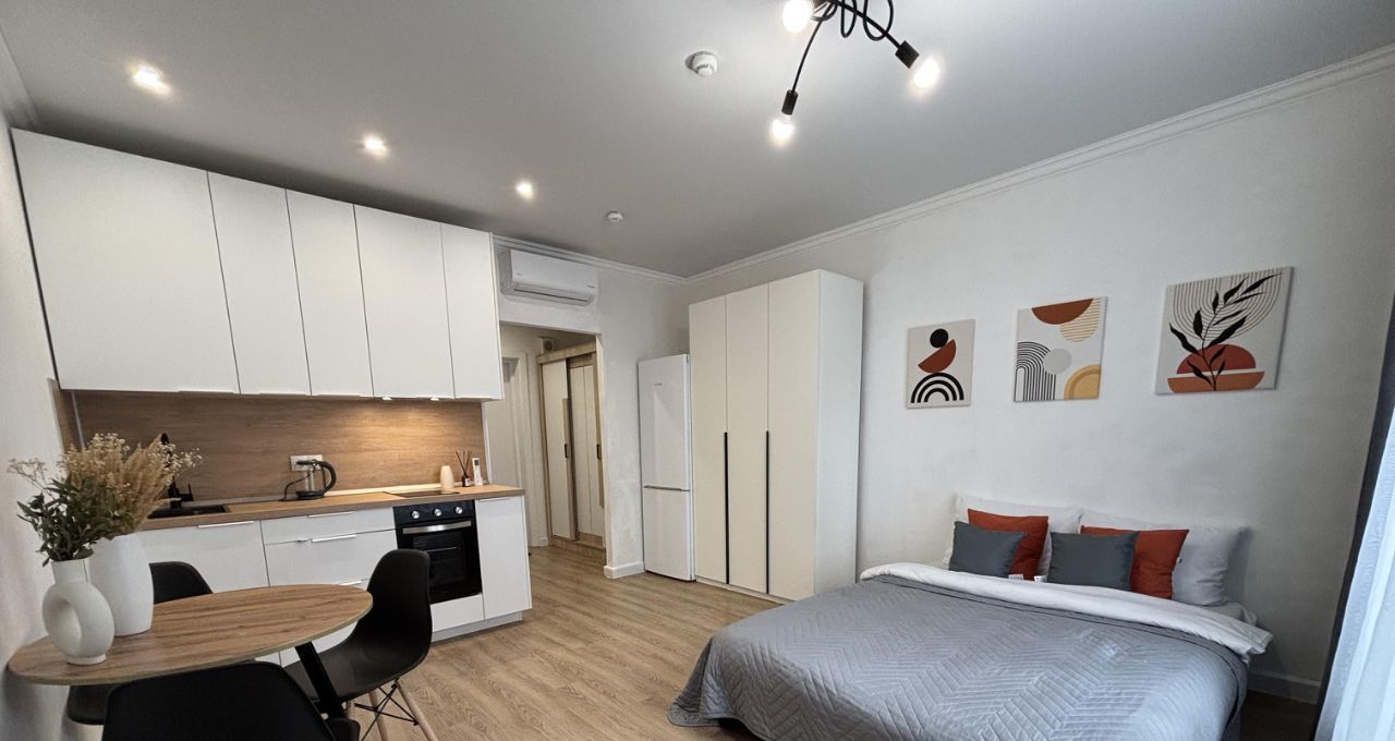 Студия с дизайнерским ремонтом, где каждая деталь продумана до мелочей. Пространство организовано максимально функционально, что делает квартиру комфортной для проживания. В квартире есть вся необходимая мебель и техника, поэтому можно сразу заехать и жить. Санузел совмещенный, выполнен в современном стиле.