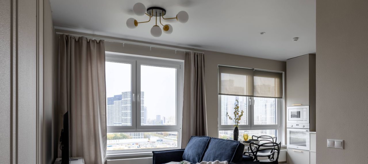 Сдается стильная студия в новом доме, расположенном в престижном районе. Квартира площадью 35 кв. м находится на 17 этаже 33-этажного дома, построенного в 2023 году. Высота потолков — 2.7 метра, окна выходят на улицу, обеспечивая отличное естественное освещение.