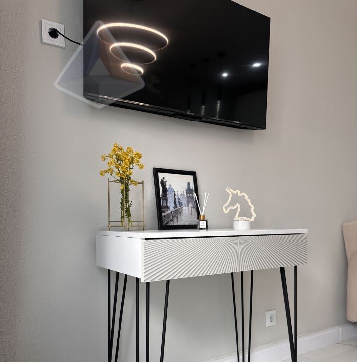 Кроме того, в квартире оборудовано рабочее место с ящиками для хранения, установлены два больших шкафа, есть SMART TV и вся необходимая посуда для повседневного использования.