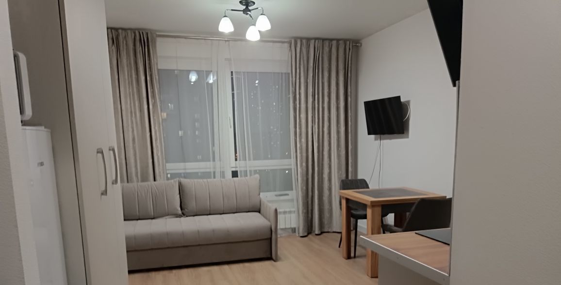 Сдаётся уютная студия с современным евроремонтом, расположенная на 16 этаже 33-этажного дома. Общая площадь квартиры составляет 22 кв. м, жилая площадь — 16 кв. м, а кухня — 3 кв. м. Из окон открывается вид во двор, что обеспечивает тишину и спокойствие.