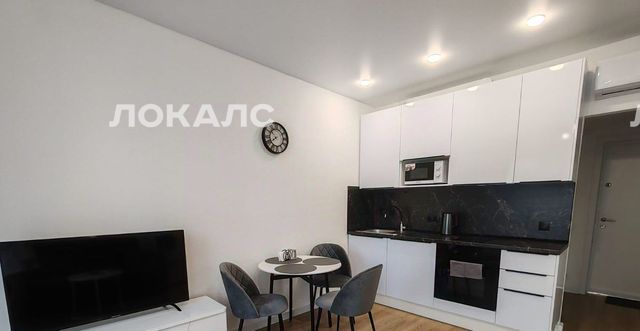 Сдаётся стильная студия на Очаковском шоссе в Москве, всего в 1 минуте пешком от метро Аминьевская. Квартира расположена на 26 этаже нового 31-этажного дома. Общая площадь квартиры составляет 23.6 кв. м. Окна выходят как во двор, так и на улицу, обеспечивая хорошее естественное освещение.