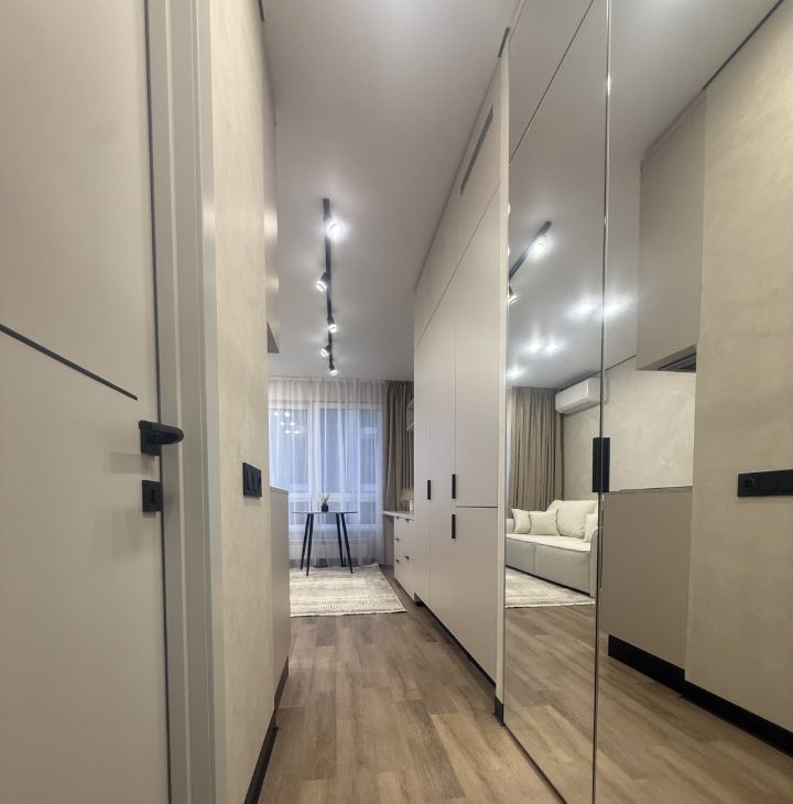 Сдается уютная квартира студия с шикарным ремонтом не от застройщика. В квартире продумано все до мелочей, много мест для хранения.