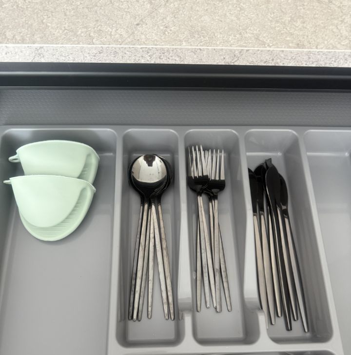 В квартире есть встроенный холодильник, духовой шкаф с микроволновой печью, кондиционер, раскладной диван, обеденный стол, рабочая зона и телевизор.