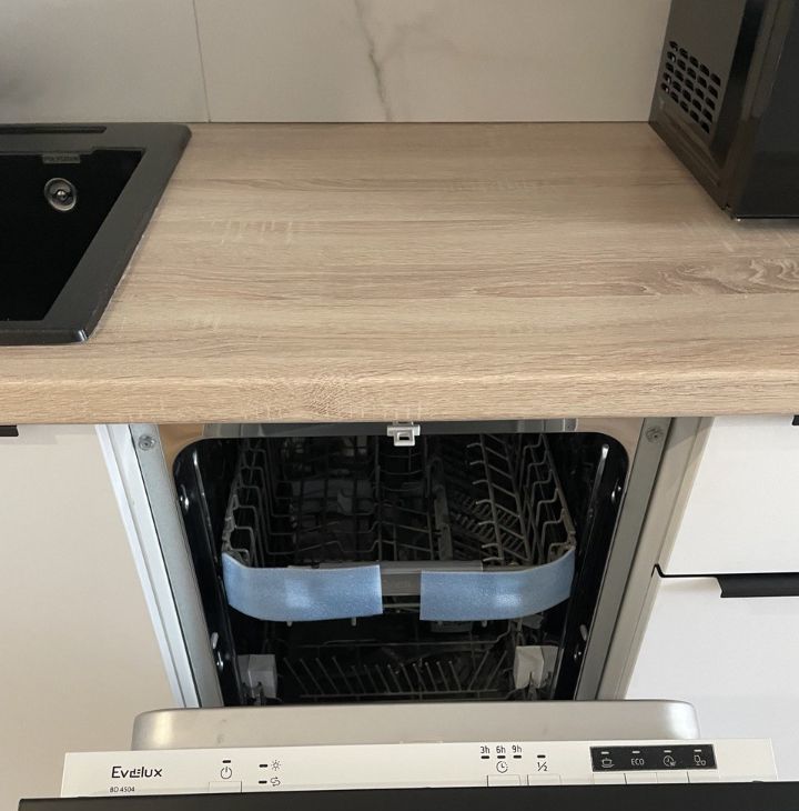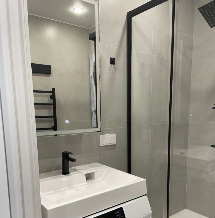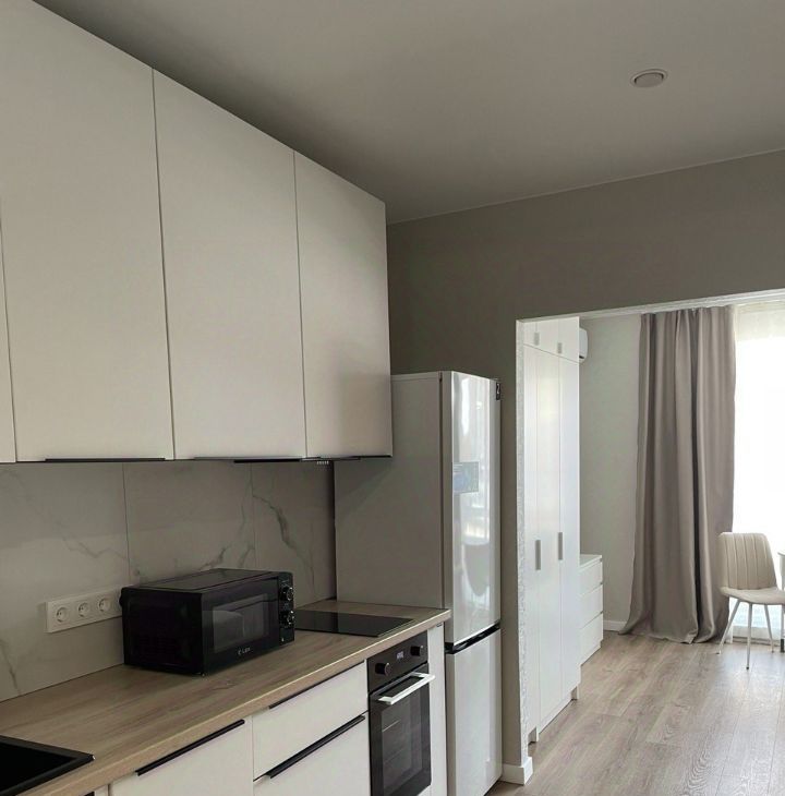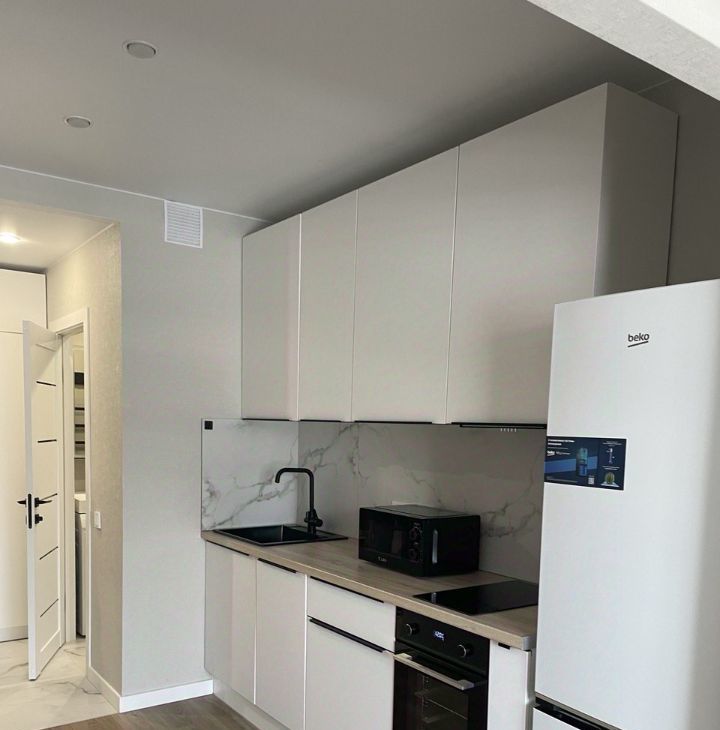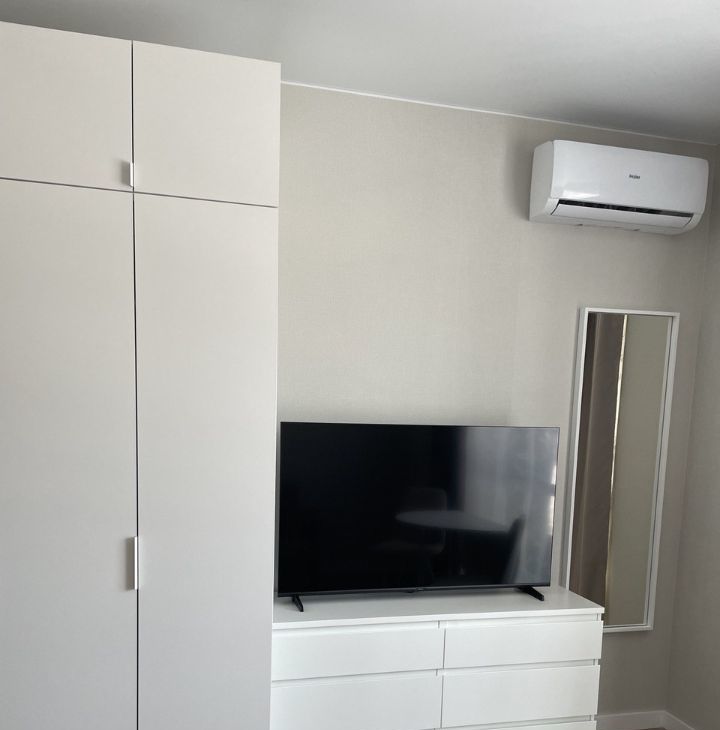 Телевизор, кондиционер сплит-система, холодильник, духовой шкаф, варочная панель (индукция), вытяжка, микроволновка, фильтра для воды (установлены под мойкой), посудомоечная машина, стиральная машина, пылесос вертикальный, тёплый пол в ванной комнате и коридоре, интернет (роутер есть).