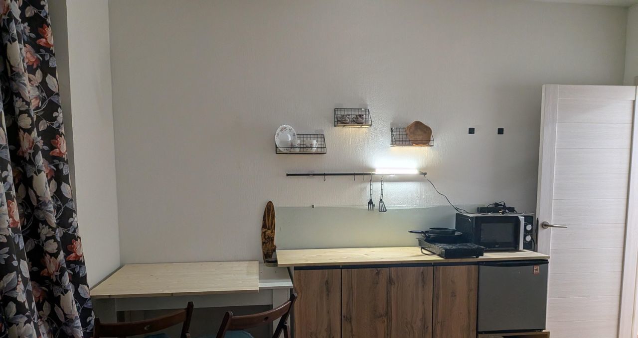 Кухонная зона оборудована всем необходимым. Все мебель и техника новая.