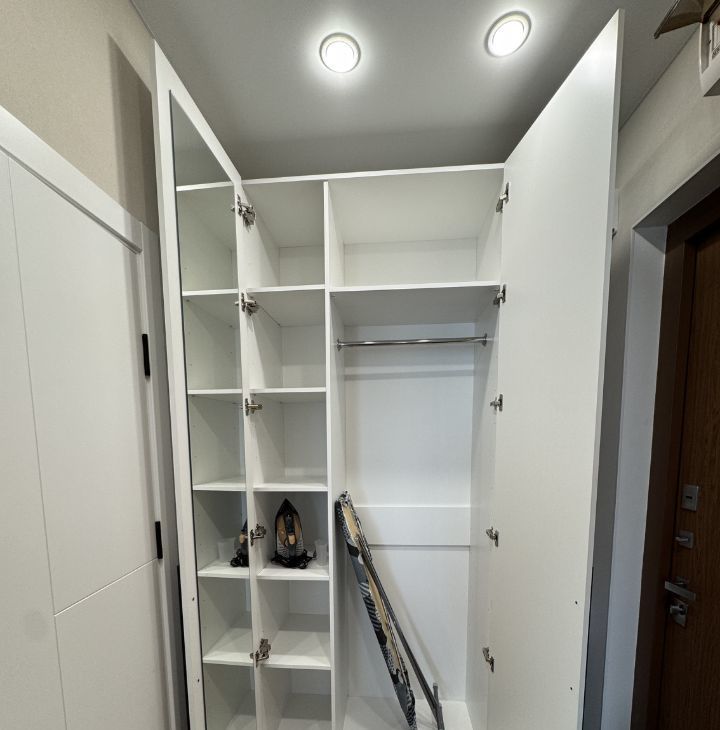 Техника: холодильник, варочная поверхность, духовой шкаф, вытяжка, микроволновая печь, телевизор.