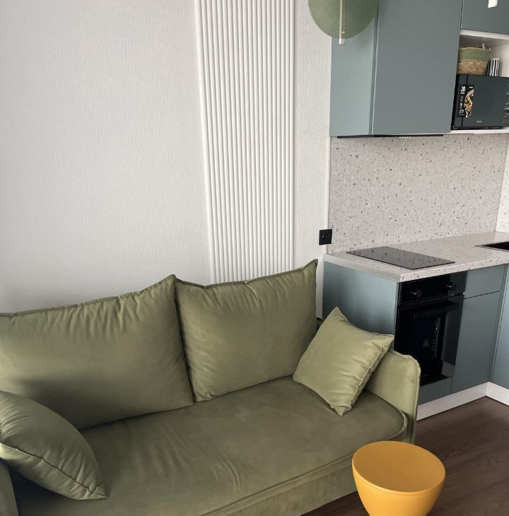 Сдаётся стильная студия в монолитно-кирпичном доме 2024 года постройки. Просторная квартира с дизайнерским ремонтом, оснащена всем необходимым для комфортного проживания. В квартире есть кондиционер, холодильник и стиральная машина. Из мебели — шкафы и удобный диван.