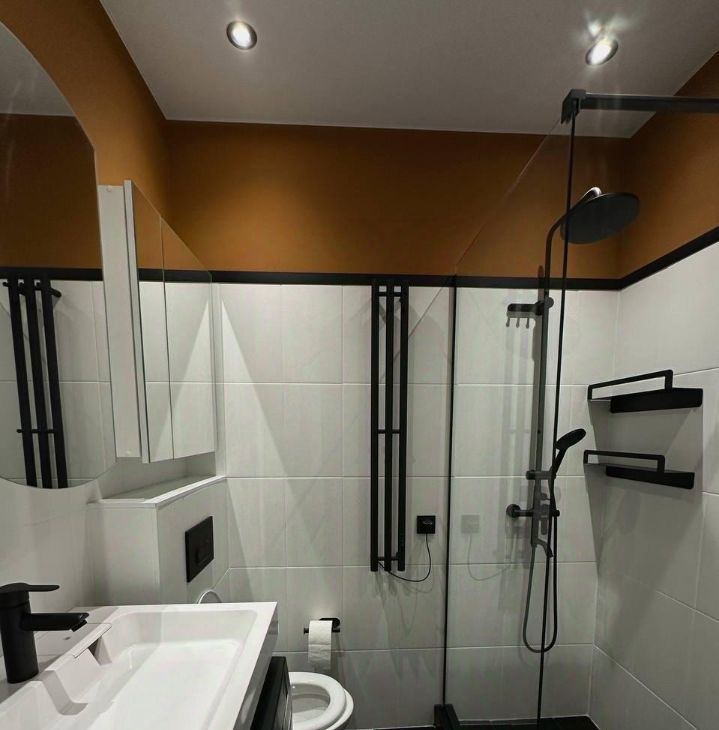 Санузел совмещённый, выполнен в современном стиле. В квартире запрещено курение, проживание с детьми и животными также не допускается. Во дворе обустроены зоны отдыха и детская площадка.