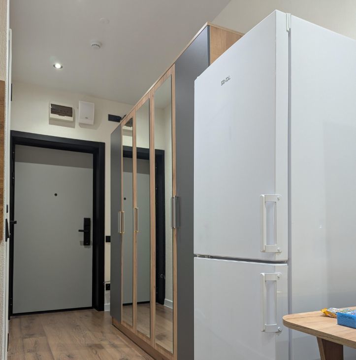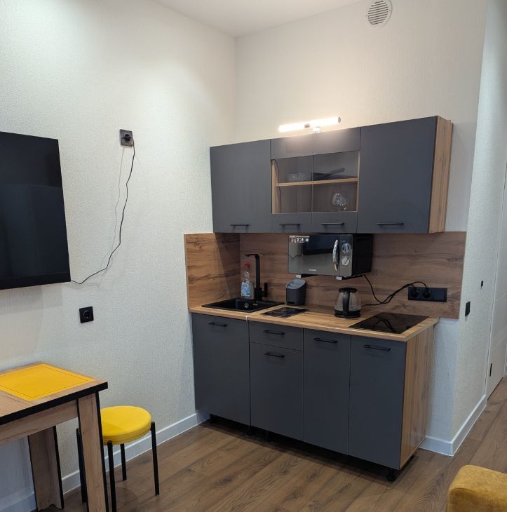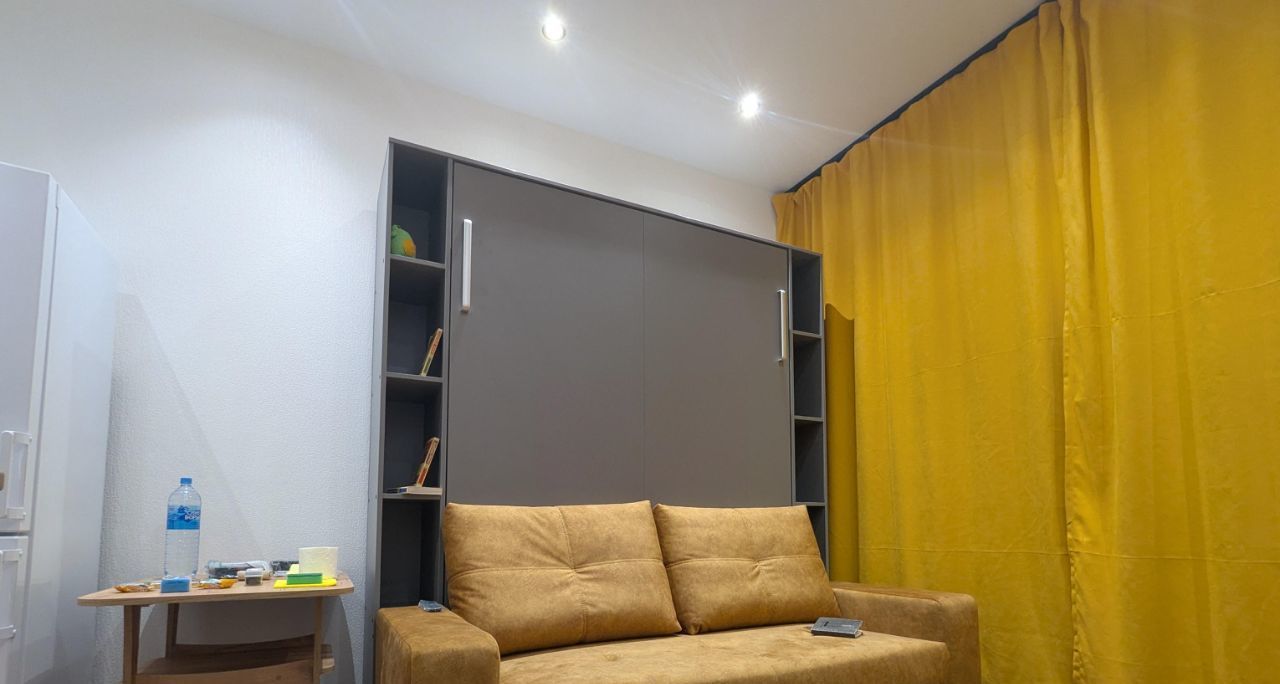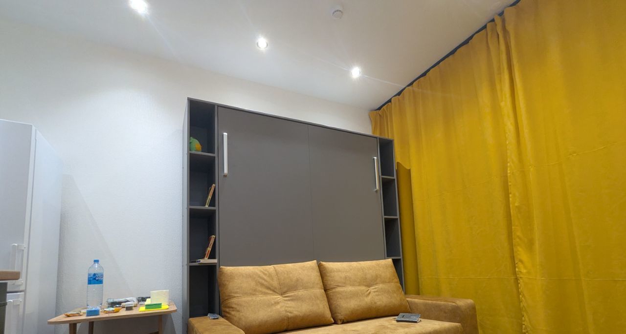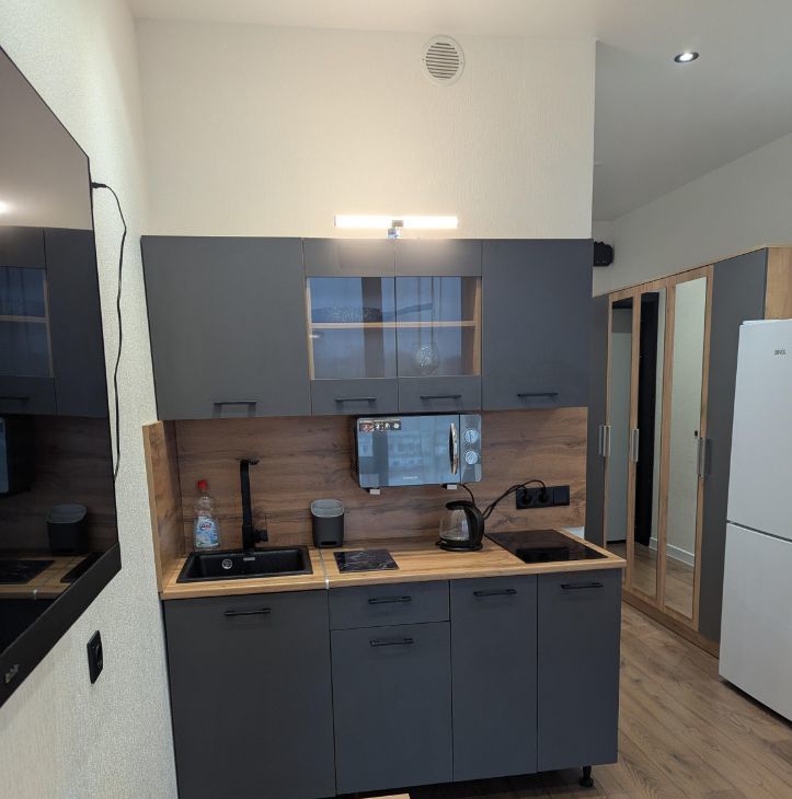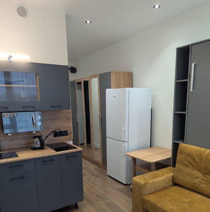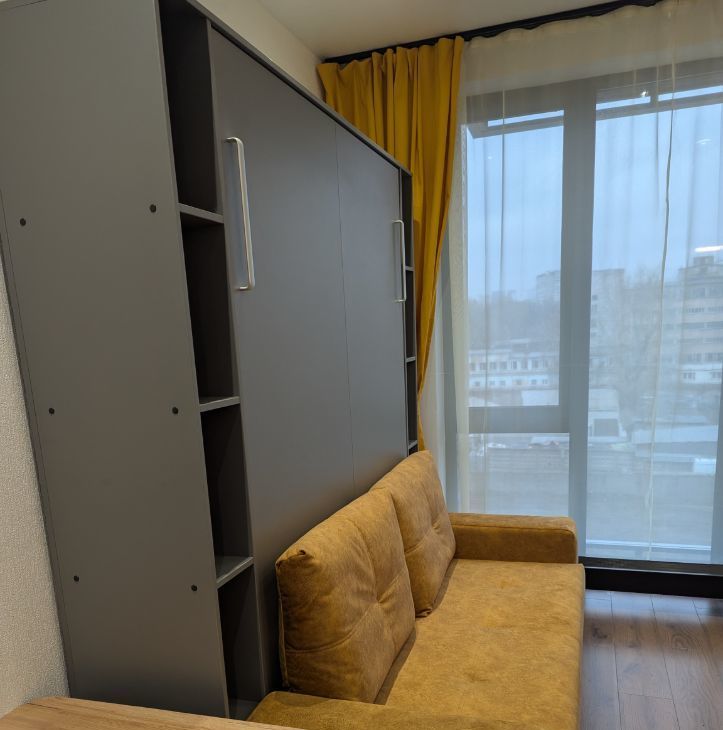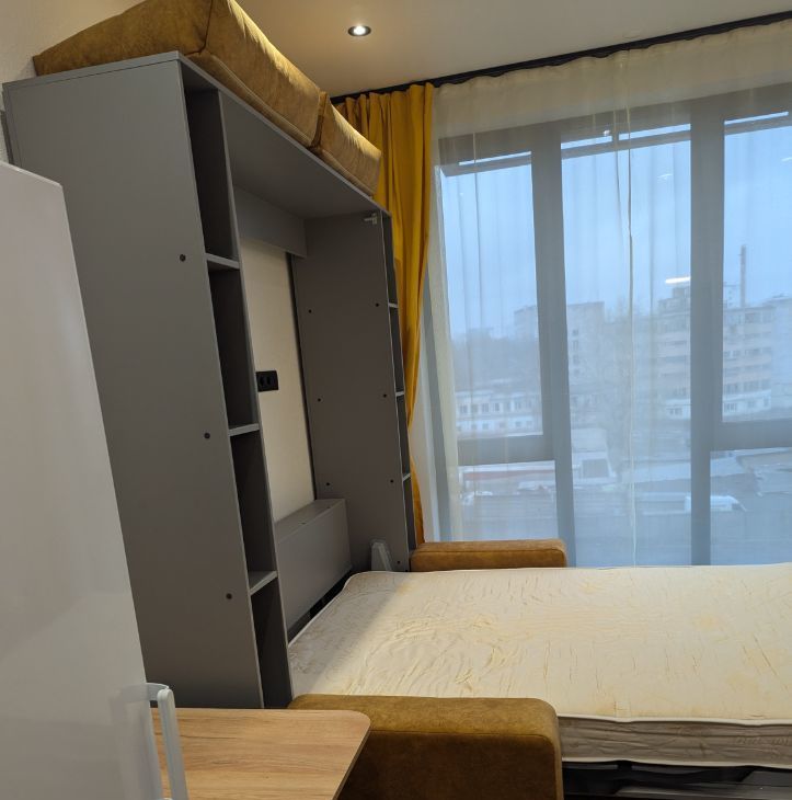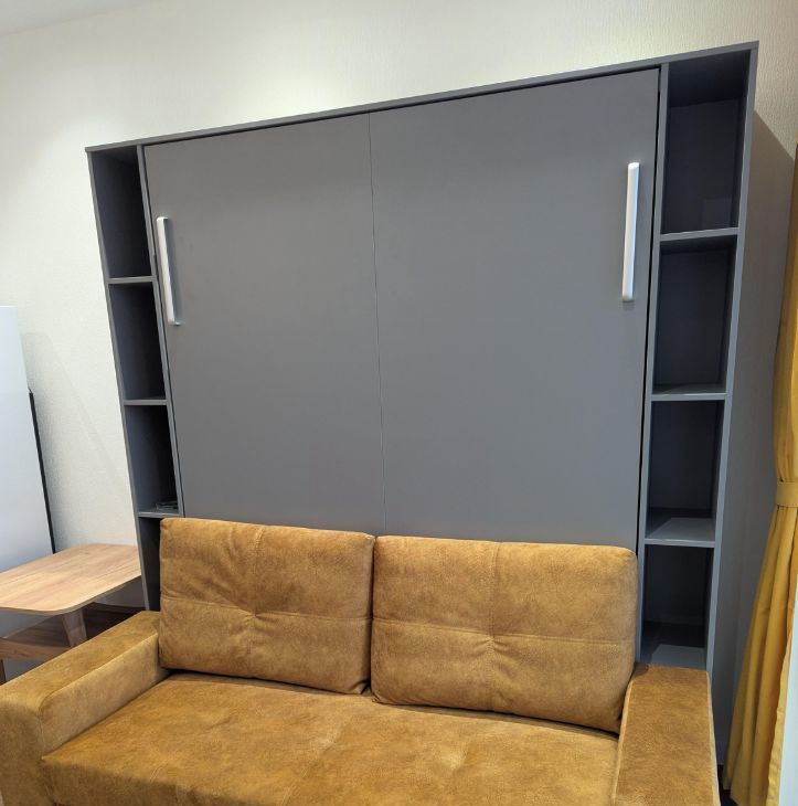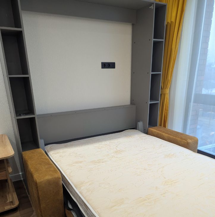 Шкаф-кровать-диван,ортопедический матрас,шкаф-прихожая, кухонный стол трансформер, кухня, журнальный столик, стиральная машина, холодильник (no frost), телевизор 50" (смарт ТВ), стекло- керамическая плита, СВЧ микроволновая печь.