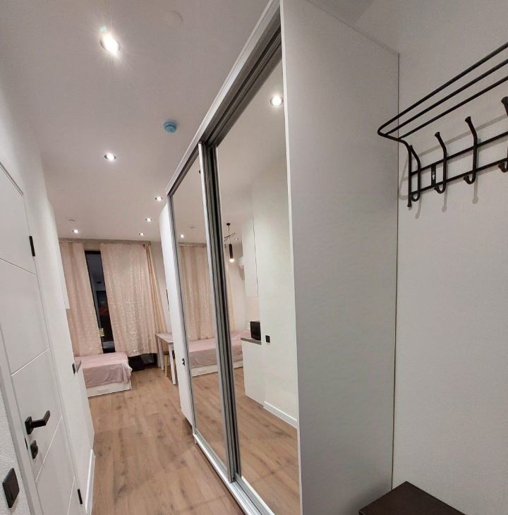 Современный ЖК. Уютная студия со всем необходимым для проживания. кровать, кондиционер. Плюс 2го этажа в возможности подняться в квартиру и спуститься вниз не ожидая очереди лифта