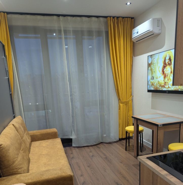 Студия с панорамными окнами и новым дизайнерским ремонтом, в доме бизнес класса 2024 года постройки.
