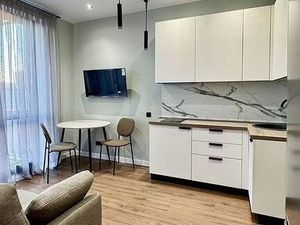 Внутри вас ждет дизайнерский ремонт, который подчеркивает современный стиль и комфорт. Студия оборудована всем необходимым: кондиционер, холодильник, посудомоечная и стиральная машины, а также телевизор. На кухне и в комнате есть мебель, что делает это предложение особенно удобным для быстрого заселения. Санузел совмещенный, с душевой кабиной.