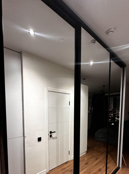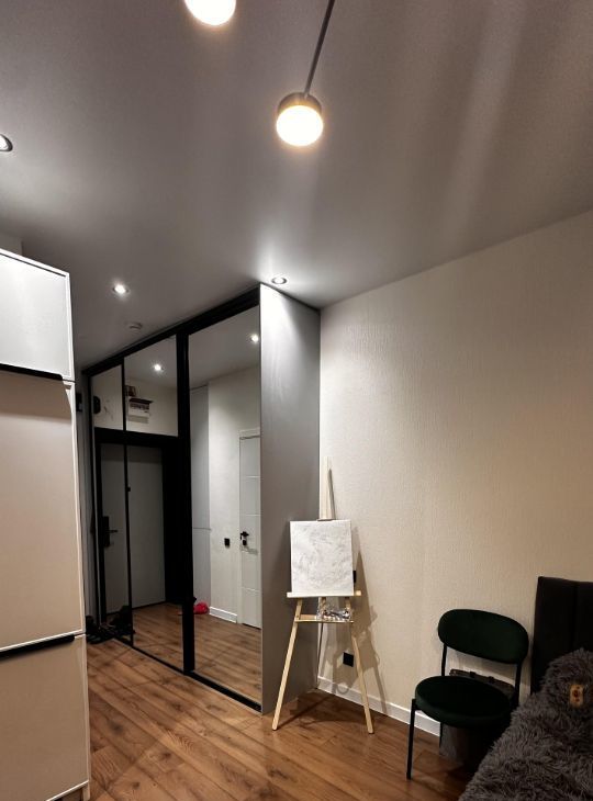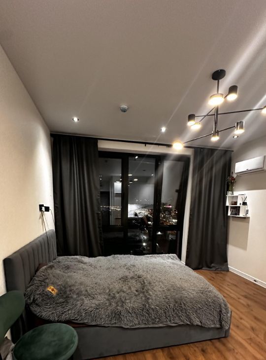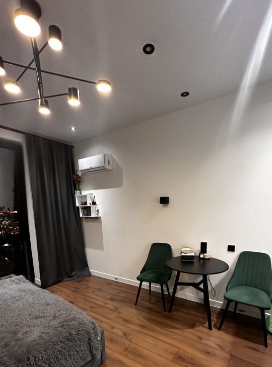 современный ремонт, стильная мебель (кровать, стол, стулья), зеркальные шкафы(гардеробная)кондиционер.