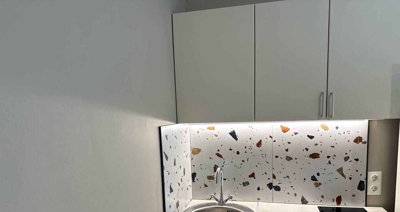 В квартире сделан современный евроремонт, что позволяет сразу же заселиться и наслаждаться комфортом. В студии есть вся необходимая мебель, поэтому можно сразу чувствовать себя как дома. Из техники - холодильник и стиральная машина, что является несомненным плюсом для арендатора. Санузел раздельный, оборудован душевой кабиной, что очень удобно.